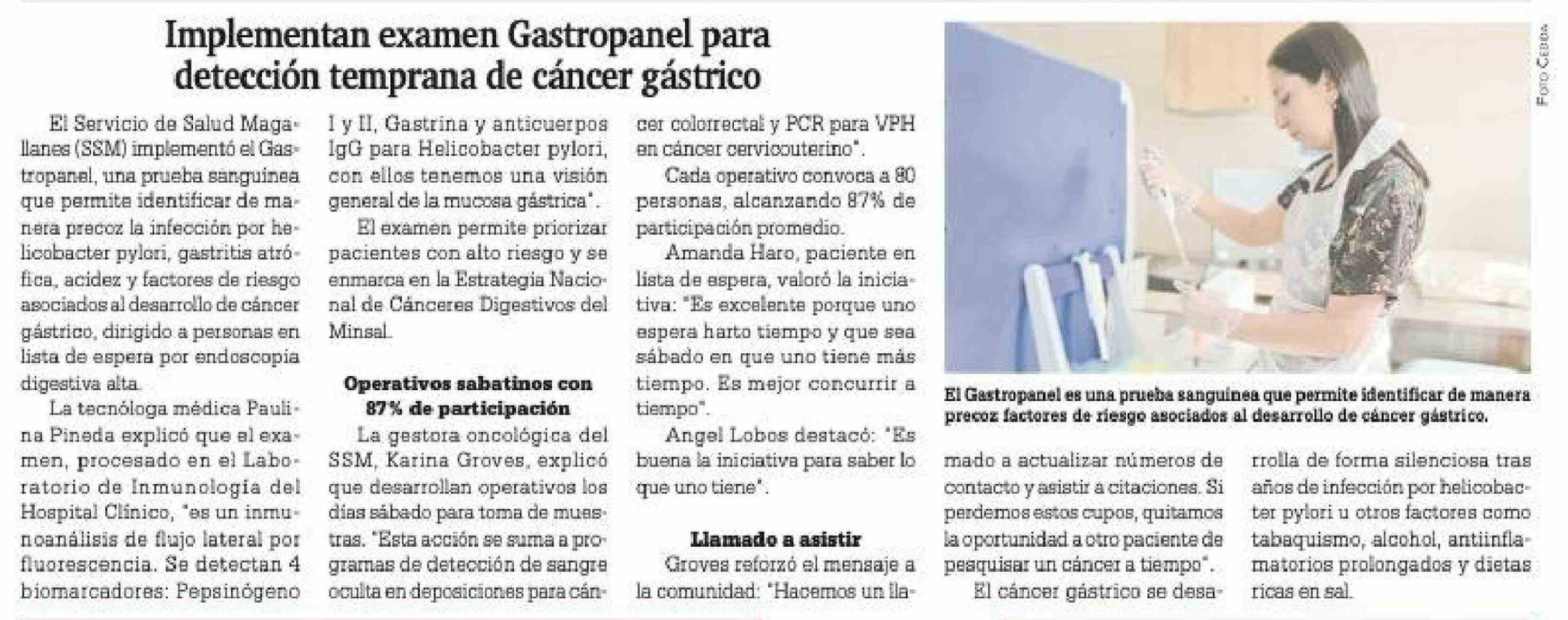Título: Implementan examen Gastropanel para detección temprana de cáncer gástrico