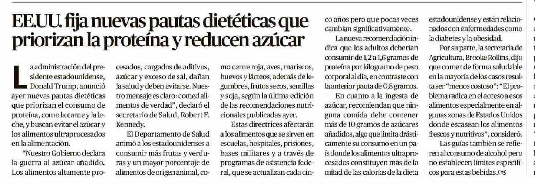 EE.UU. fija nuevas pautas dietéticas que priorizan la proteína y reducen azúcar