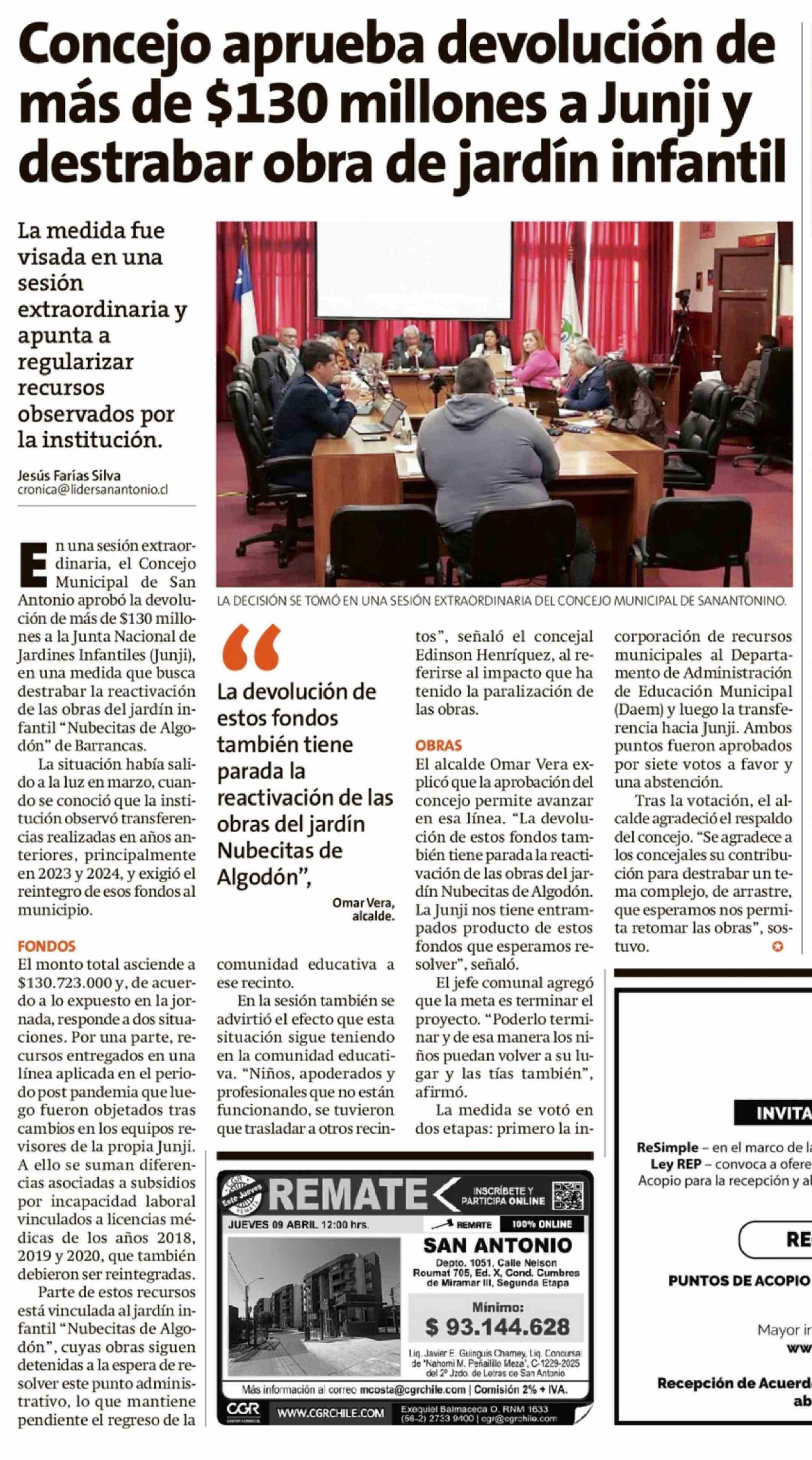 Concejo aprueba devolución de más de $130 millones a Junji y destrabar obra de jardín infantil