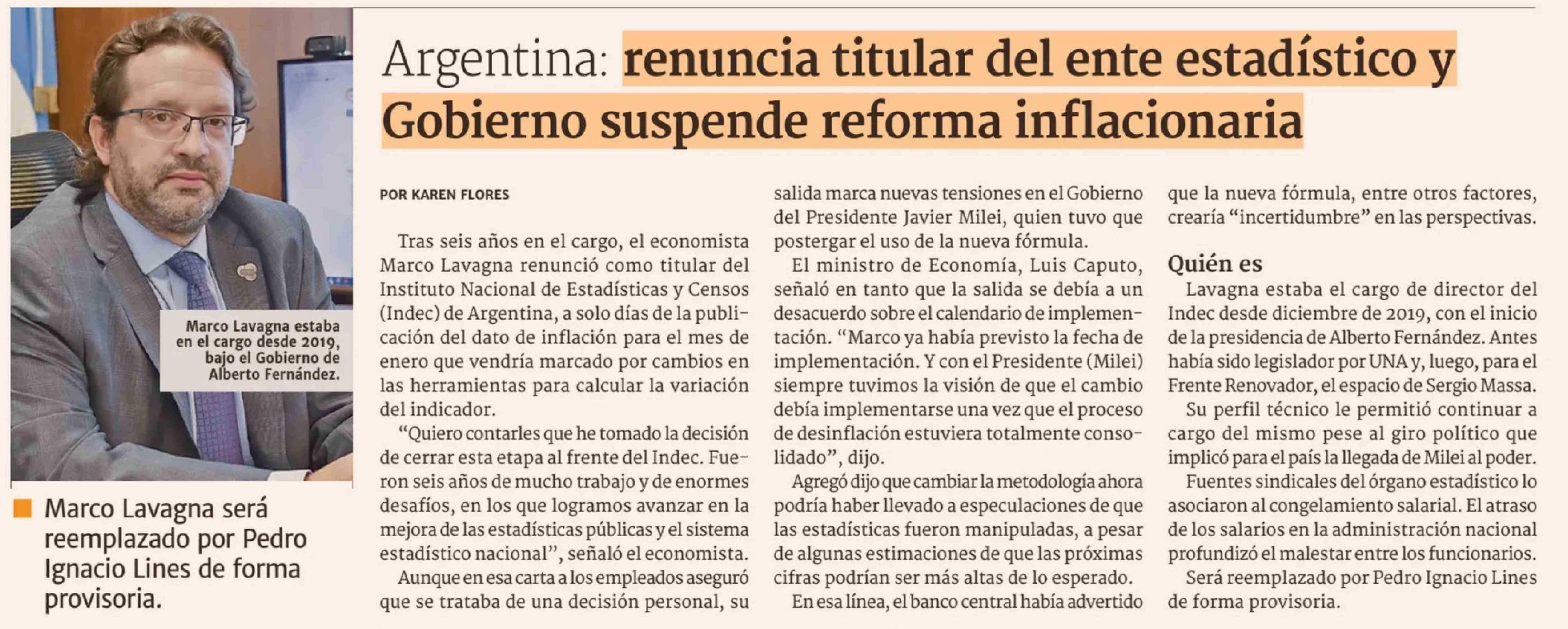 Argentina: renuncia titular del ente estadístico y Gobierno suspende reforma inflacionaria