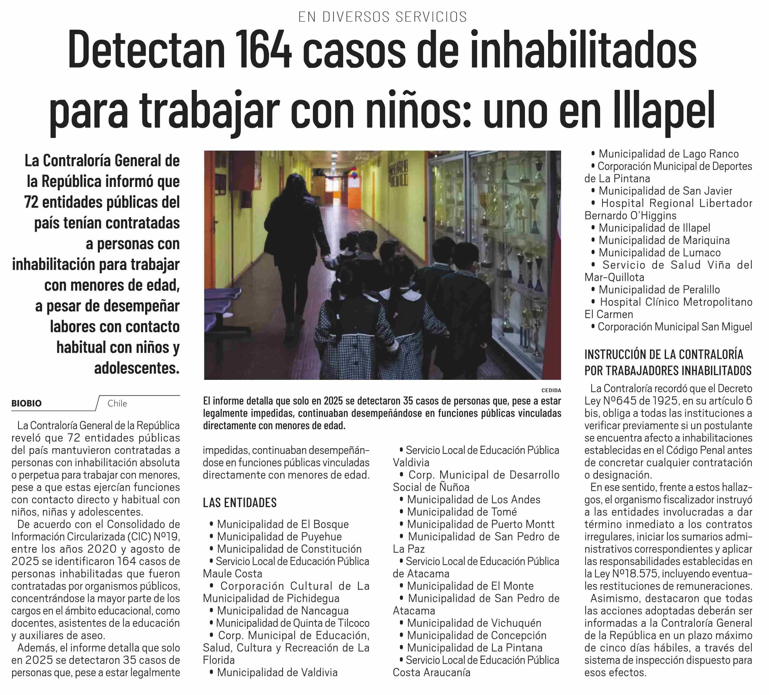 Título: Detectan 164 casos de inhabilitados para trabajar con niños: uno en Illapel
