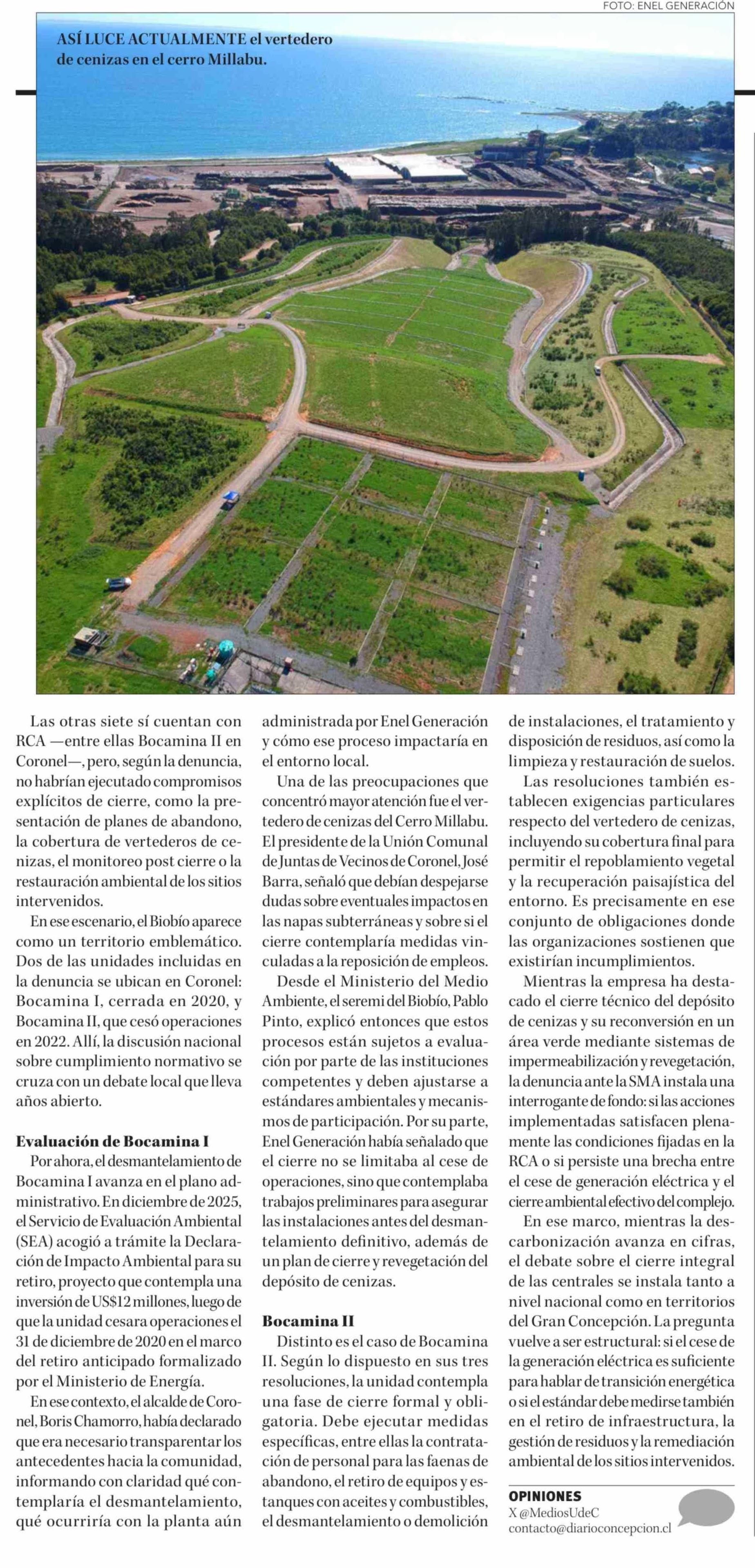 ONGs internacionales acusan incumplimientos en cierre de termoeléctricas en Coronel