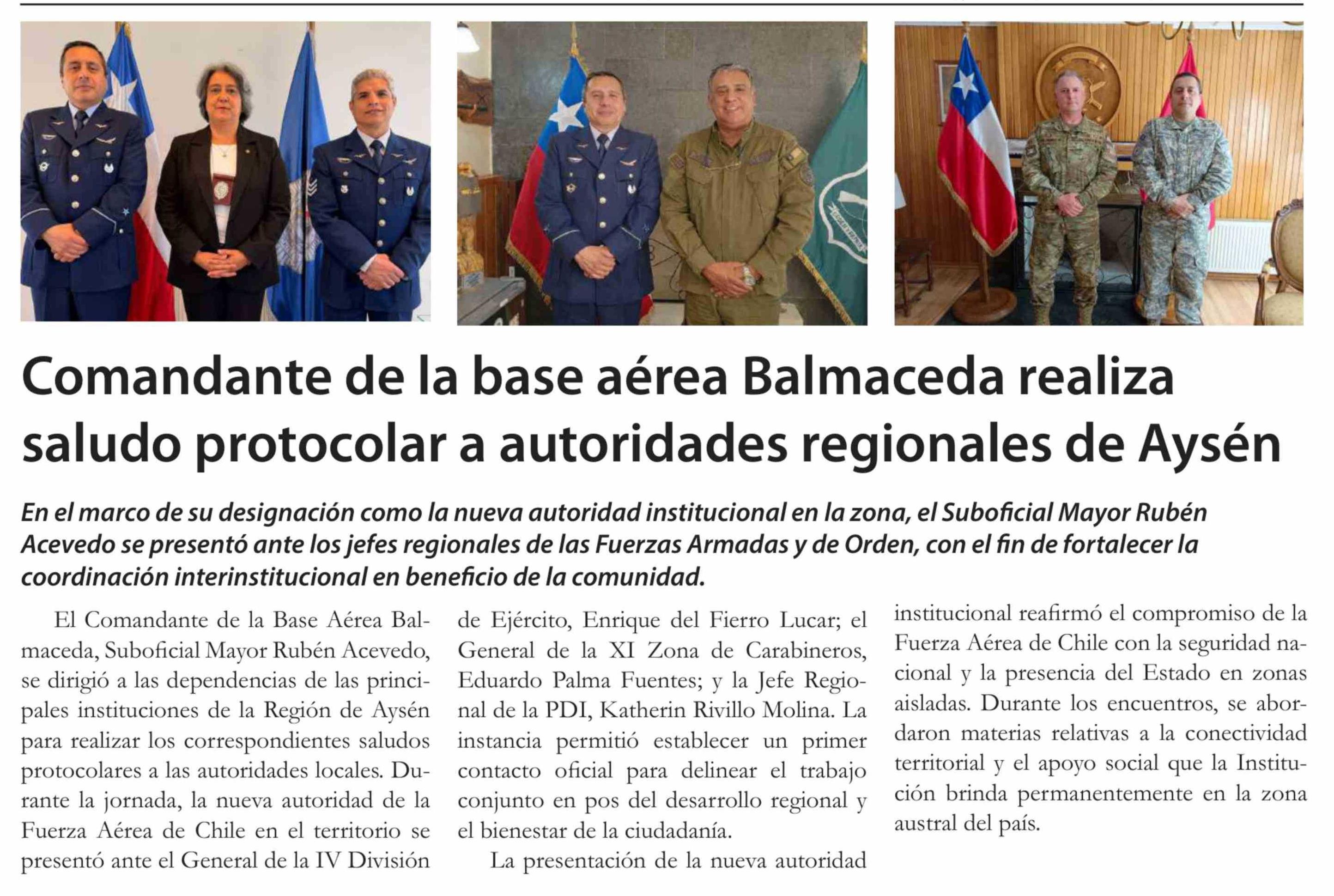 Comandante de la base aérea Balmaceda realiza saludo protocolar a autoridades regionales de Aysén