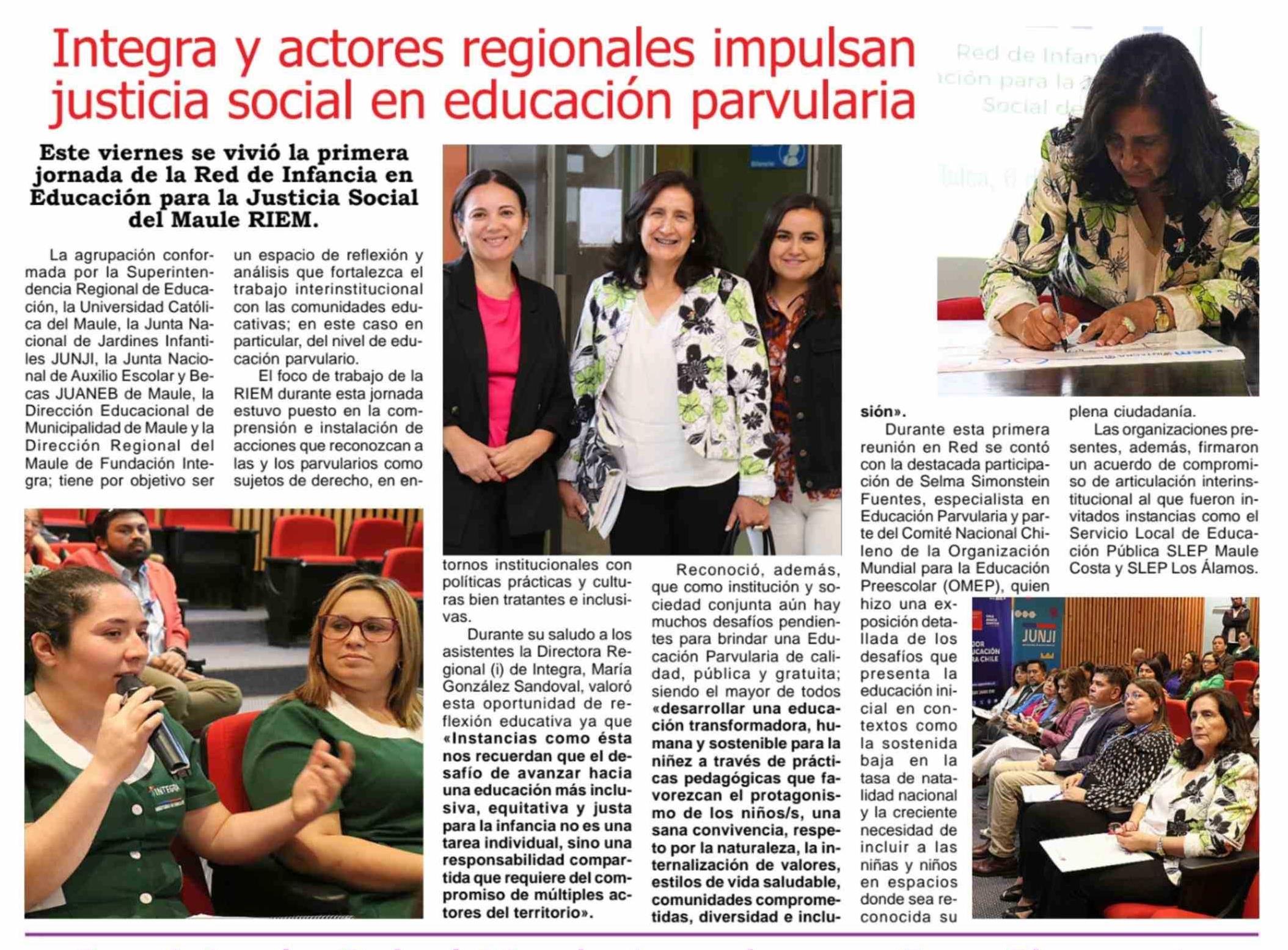 Integra y actores regionales impulsan justicia social en educación parvularia