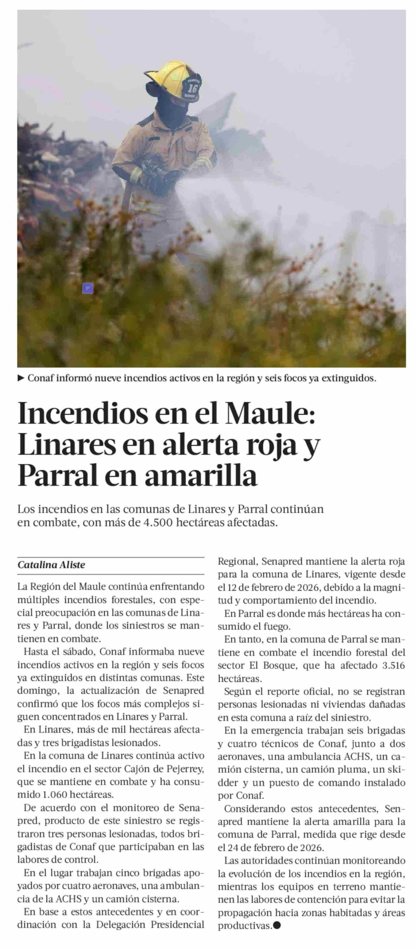 Incendios en el Maule: Linares en alerta roja y Parral en amarilla
