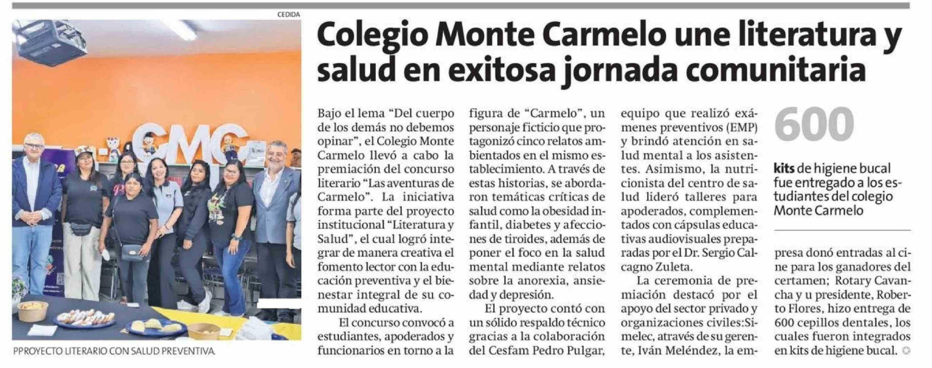 Colegio Monte Carmelo une literatura y salud en exitosa jornada comunitaria