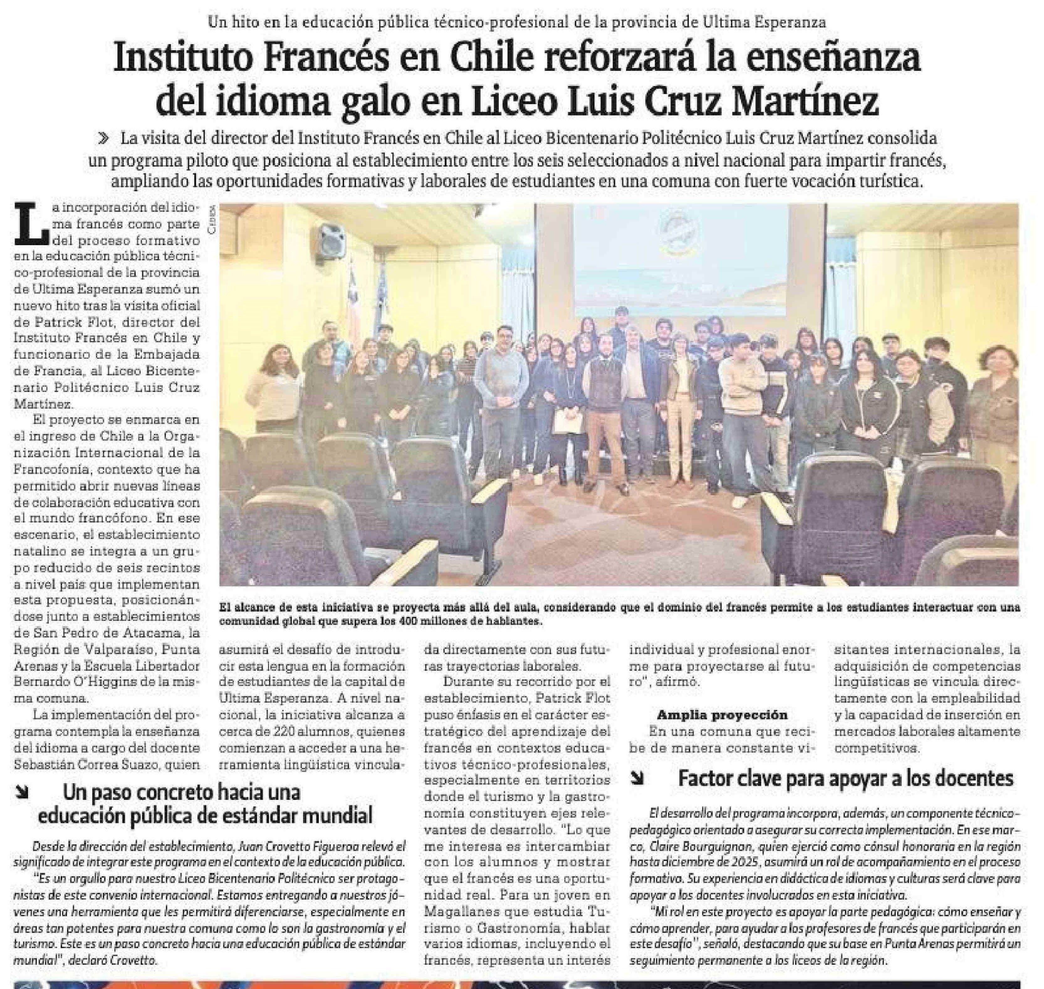 Instituto Francés en Chile reforzará la enseñanza del idioma galo en Liceo Luis Cruz Martínez