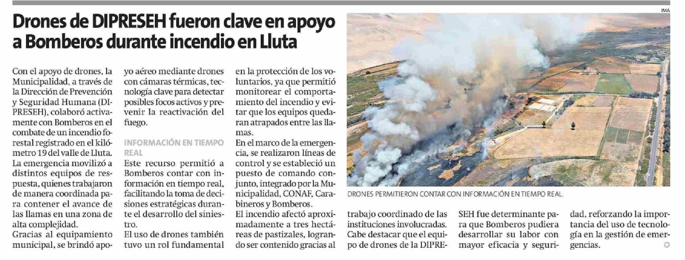 Drones de DIPRESEH fueron clave en apoyo a Bomberos durante incendio en Lluta