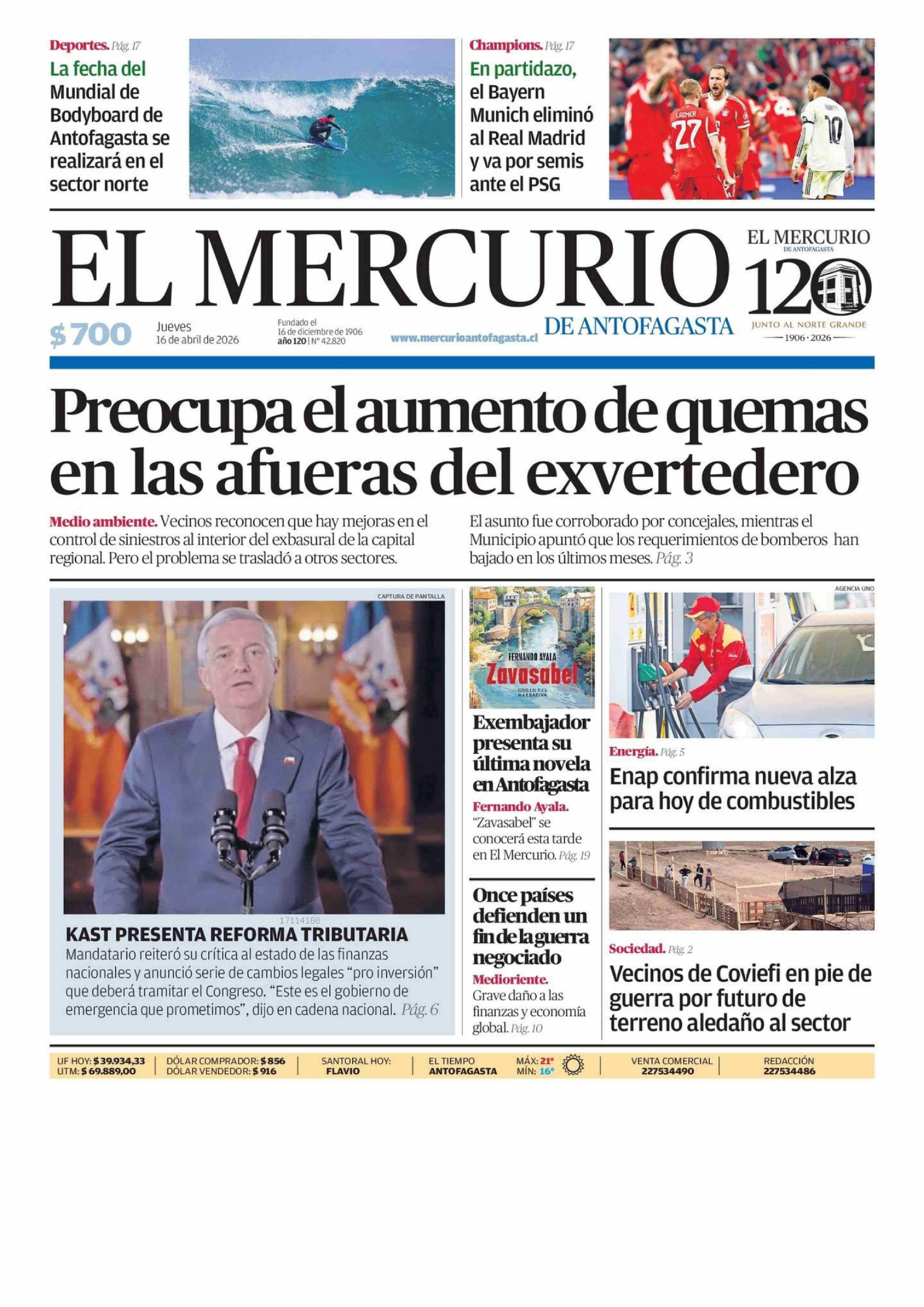 PORTADA EL MERCURIO DE ANTOFAGASTA CHILE