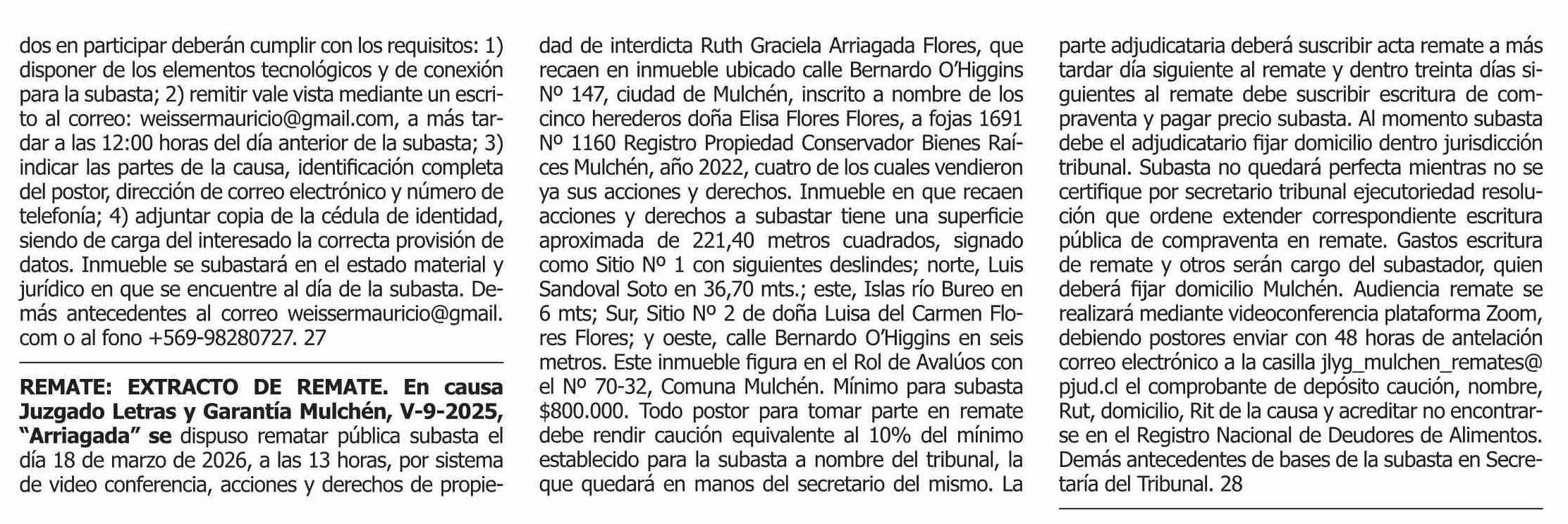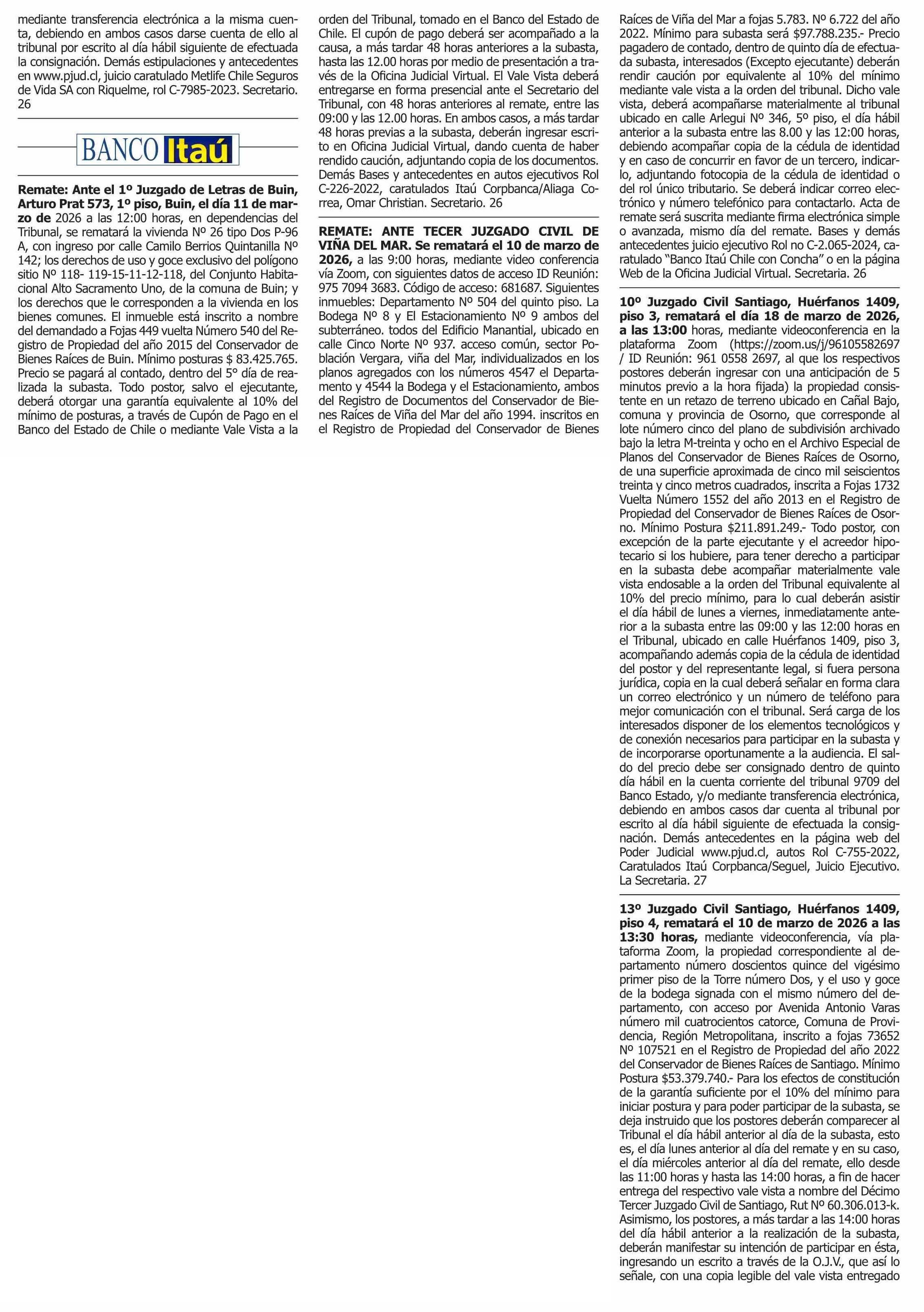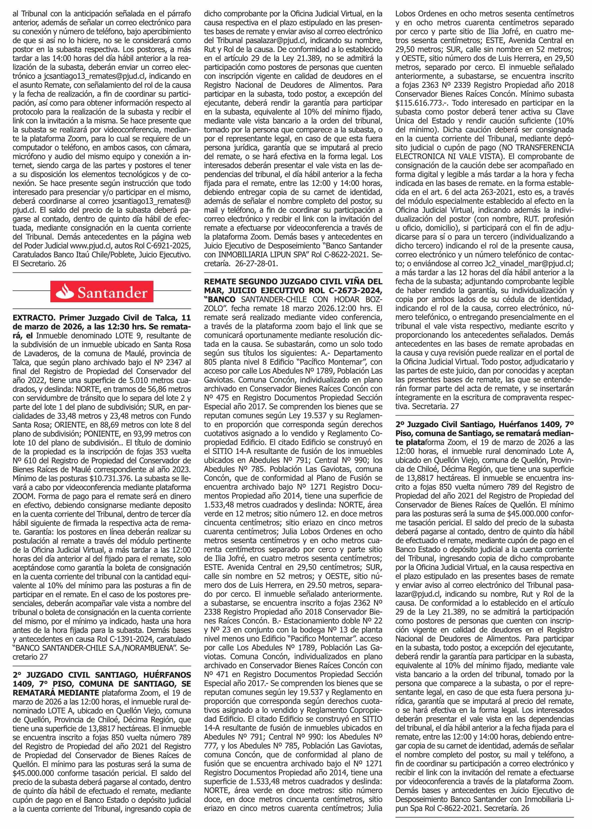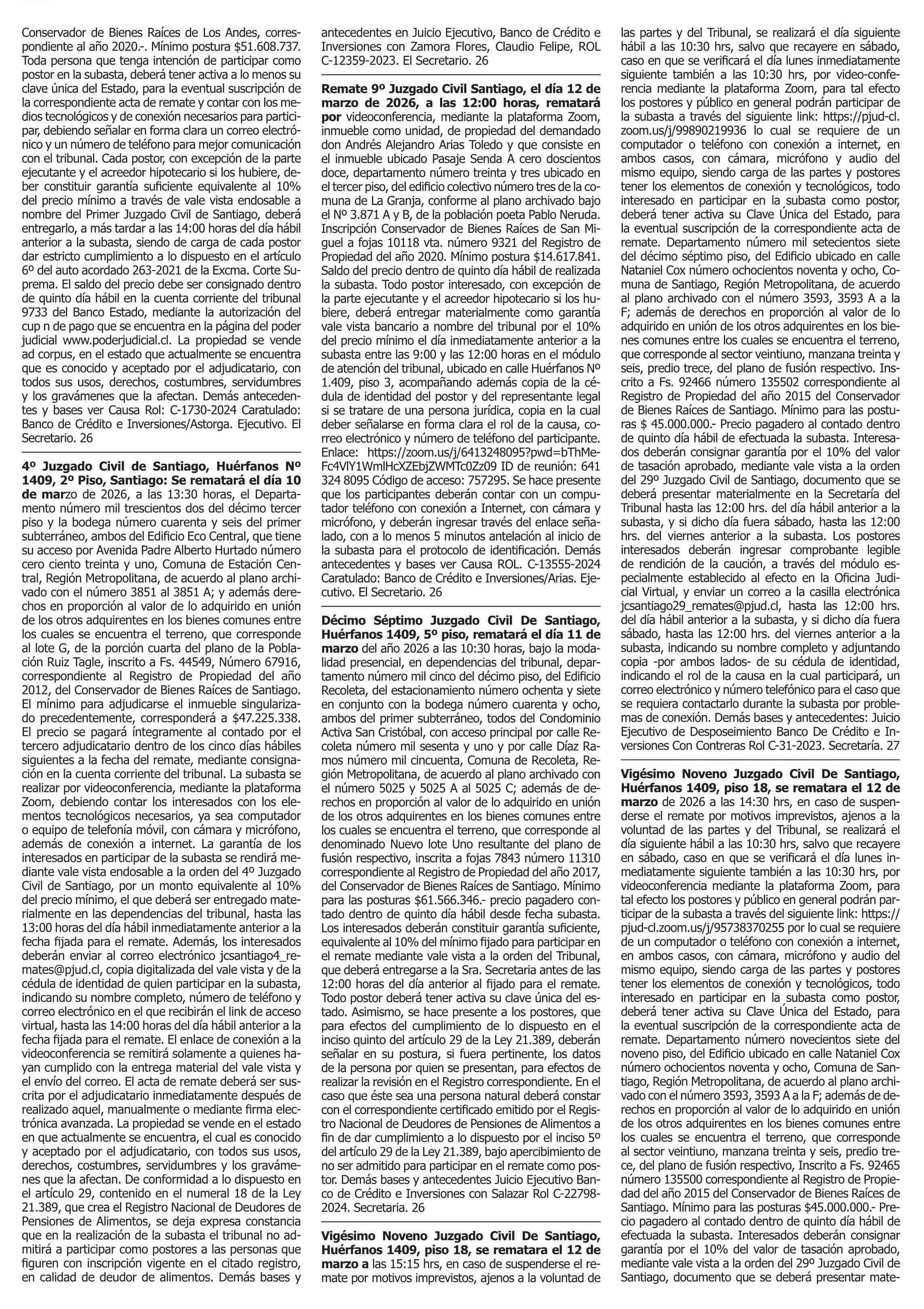 Fecha: 26-02-2026 Sector: Remates Región: Región Metropolitana de Santiago