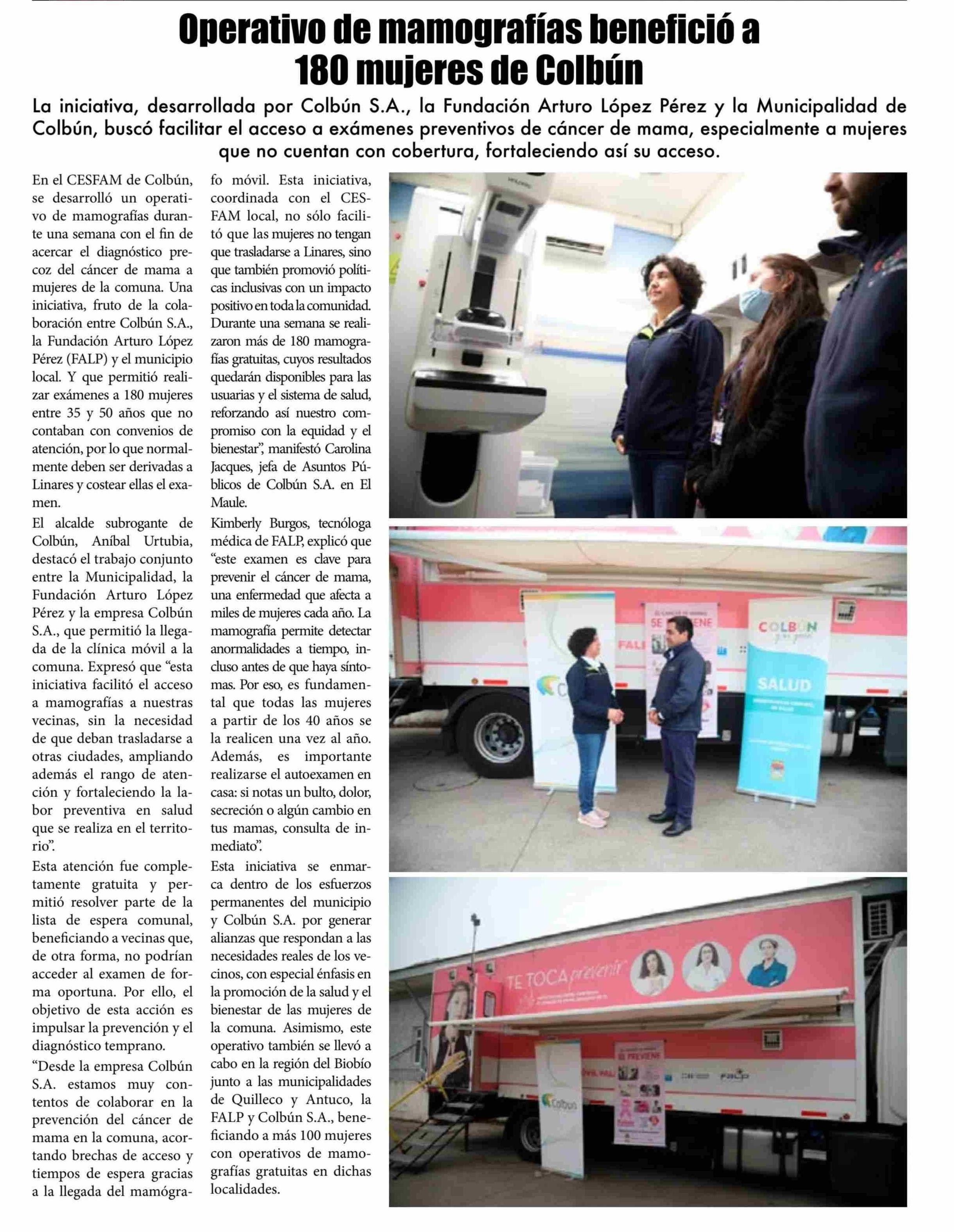 Operativo de mamografías henefició a 180 mujeres de Colbún