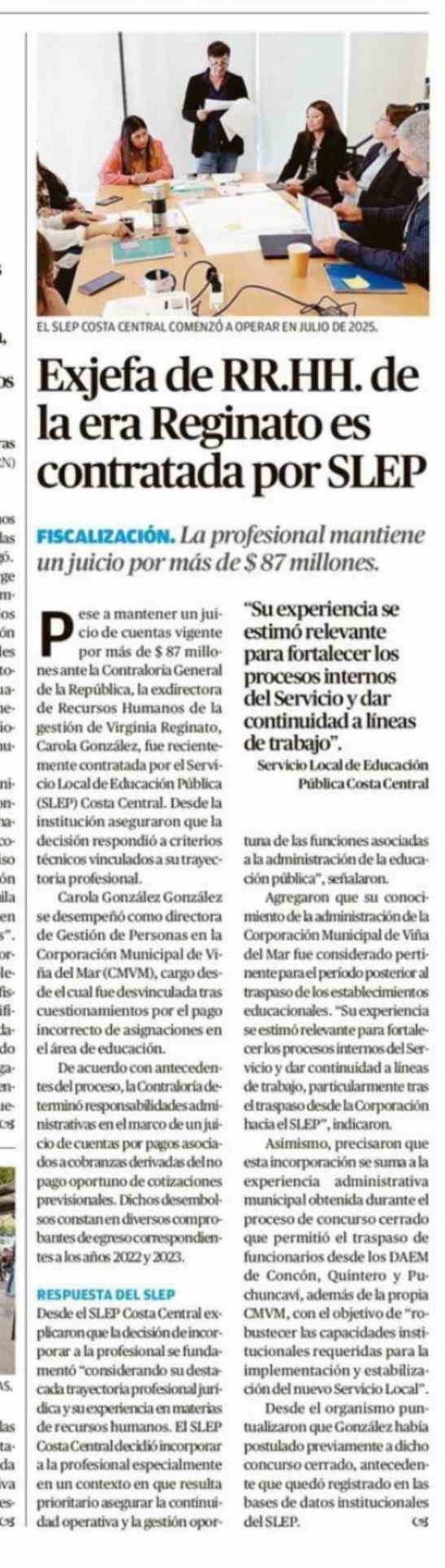 Exjefa de RR.HH. de la era Reginato es contratada por SLEP