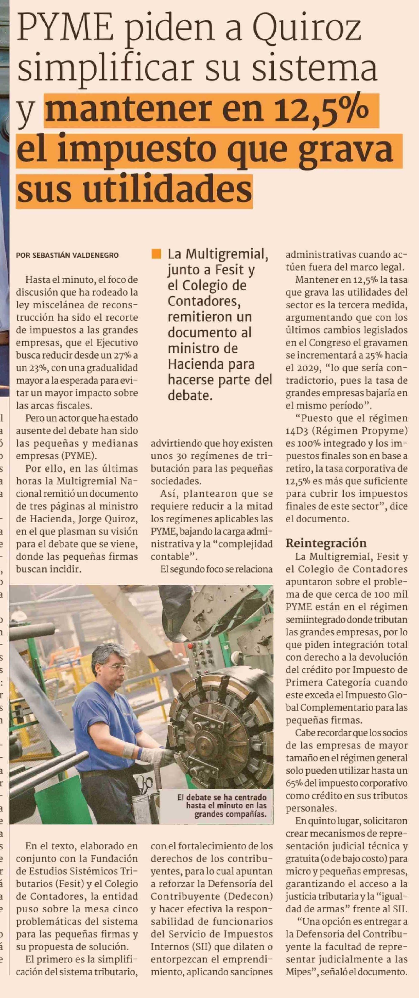 PYME piden a Quiroz simplificar su sistema y mantener en 12,5% el impuesto que grava sus utilidades