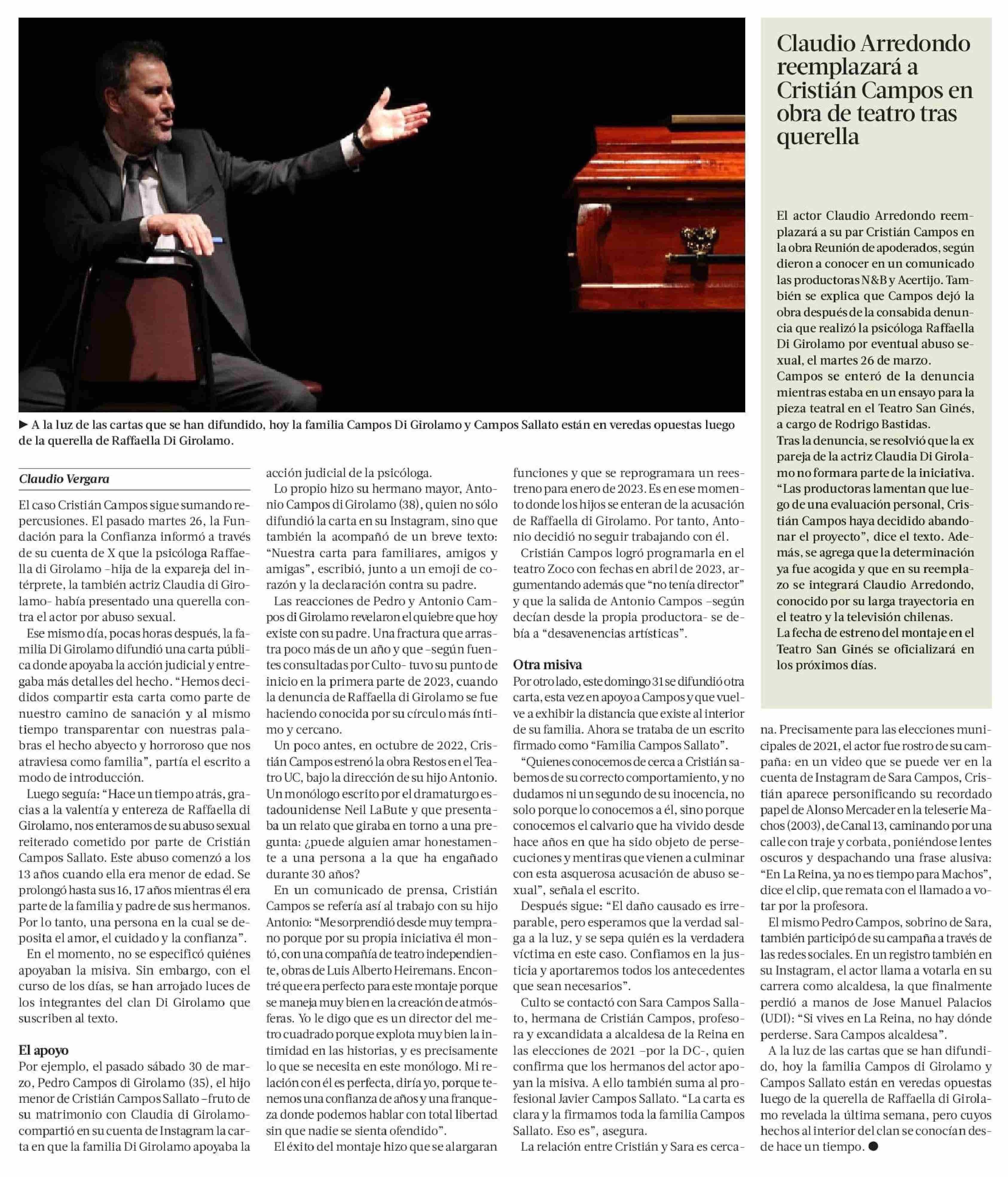 El quiebre al interior de la familia de Cristián Campos tras la denuncia por presunto abuso sexual contra el actor