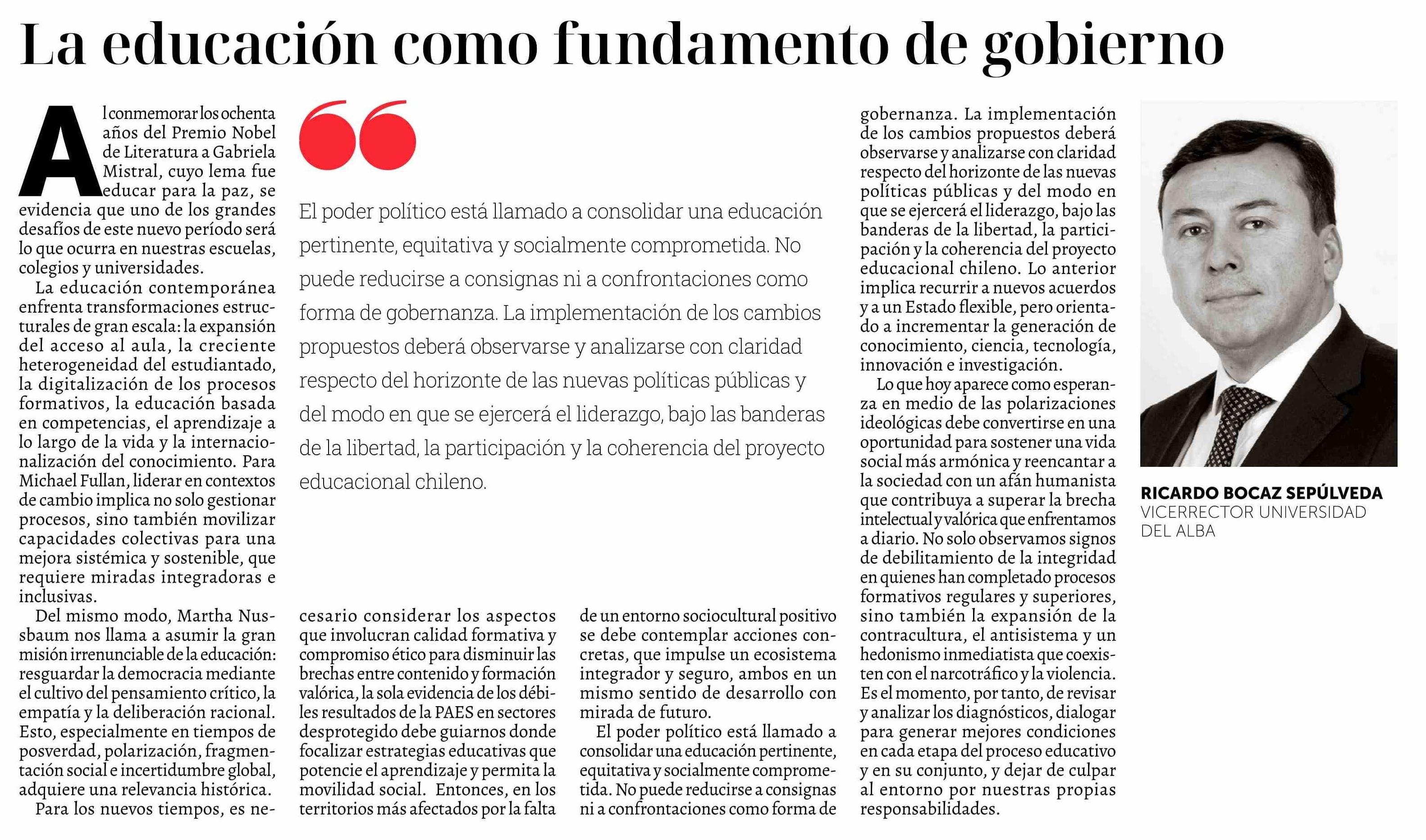 Título: Columnas de Opinión: La educación como fundamento de gobierno