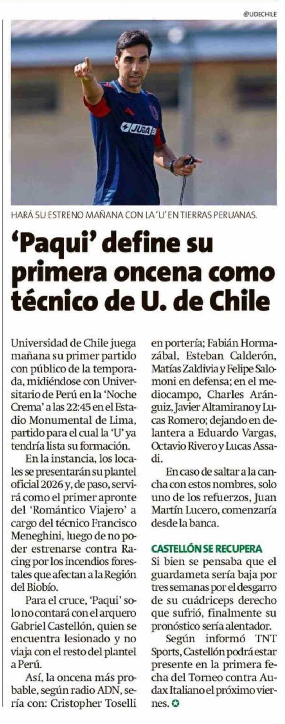 'Paqui' define su primera oncena como técnico de U. de Chile