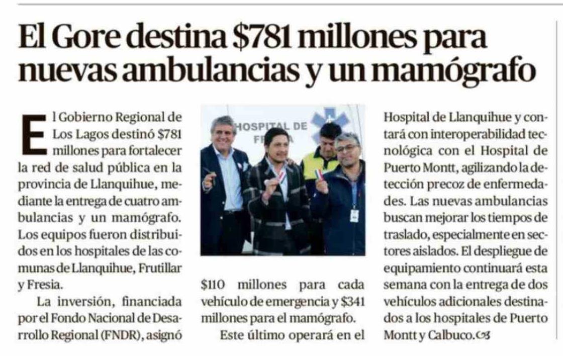 El Gore destina $781 millones para nuevas ambulancias y un mamógrafo