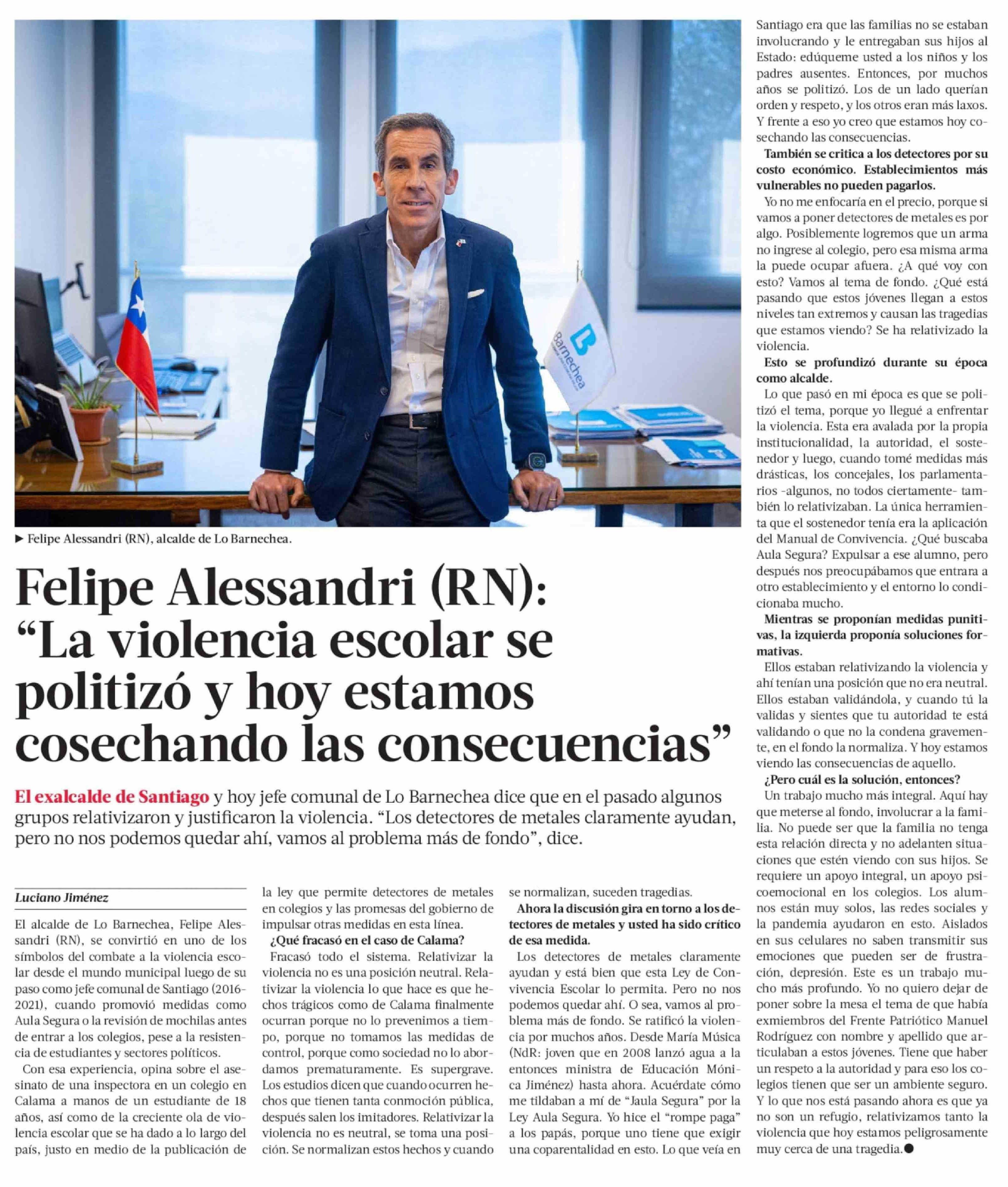 Felipe Alessandri (RN): “La violencia escolar se politizó y hoy estamos cosechando las consecuencias”