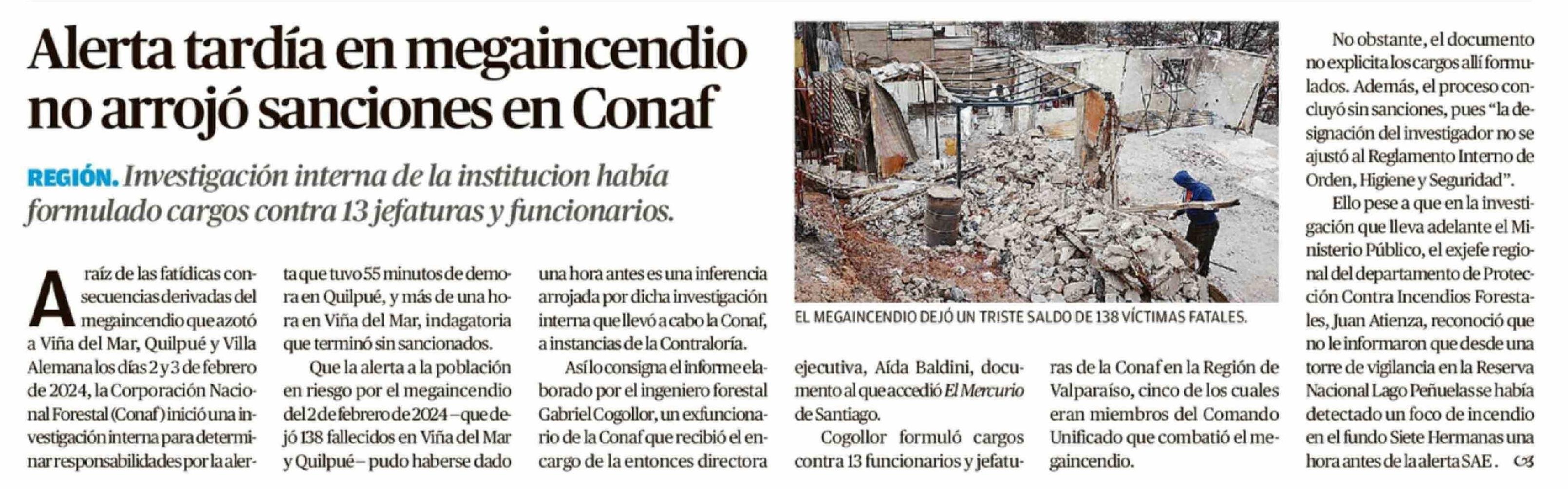 Alerta tardía en megaincendio no arrojó sanciones en Conaf