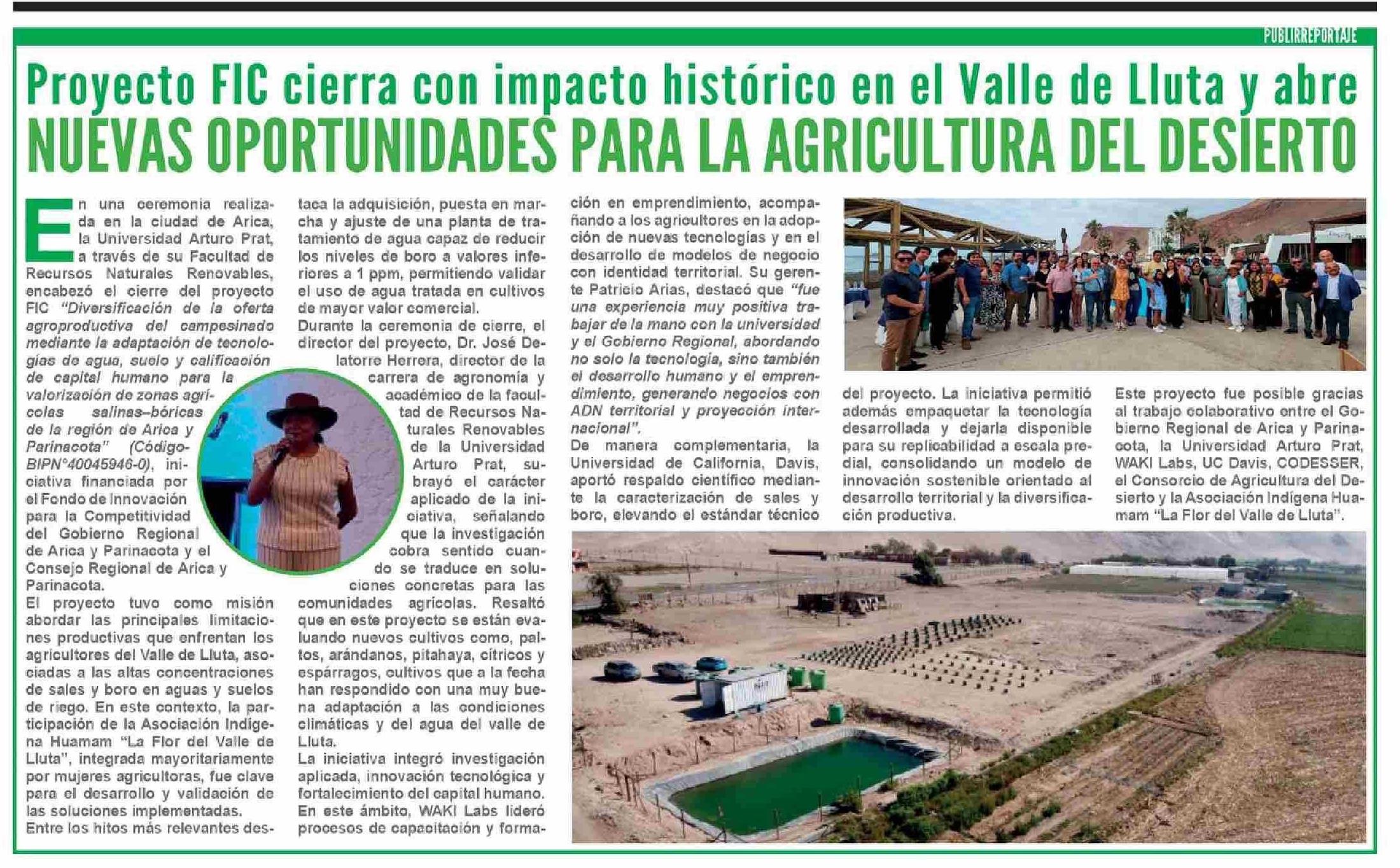 Proyecto FIC cierra con impacto histórico en el Valle de Lluta y abre NUEVAS OPORTUNIDADES PARA LA AGRICULTURA DEL DESIERTO