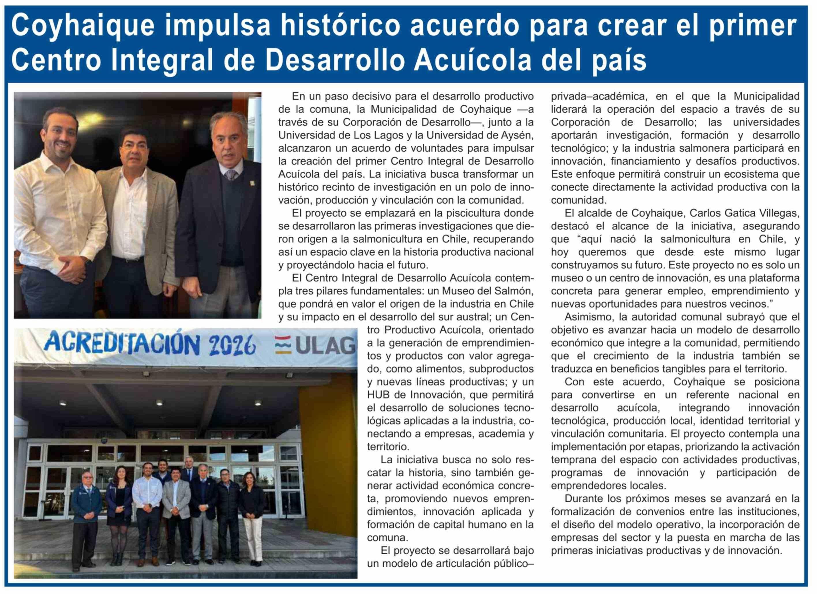 Título: Coyhaique impulsa histórico acuerdo para crear el primer Centro Integral de Desarrollo Acuícola del país