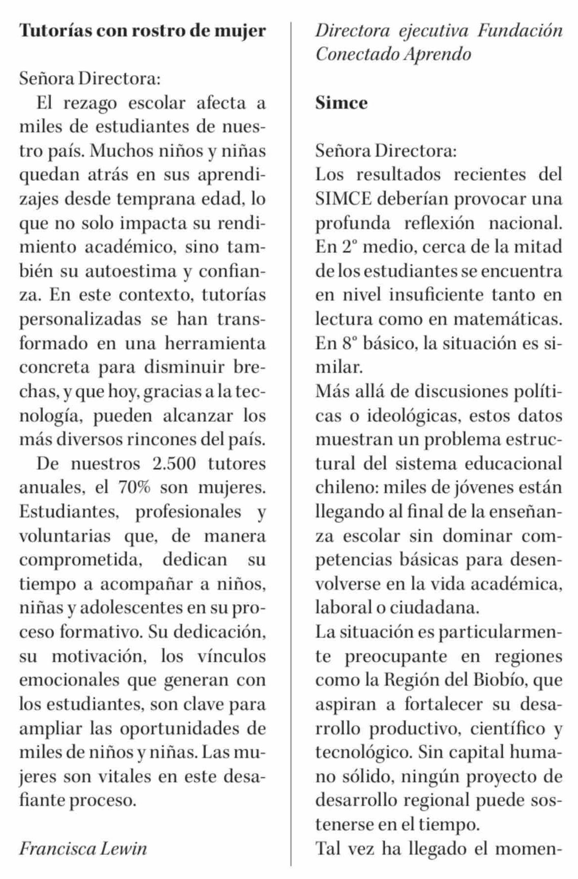 Cartas: Tutorías con rostro de mujer