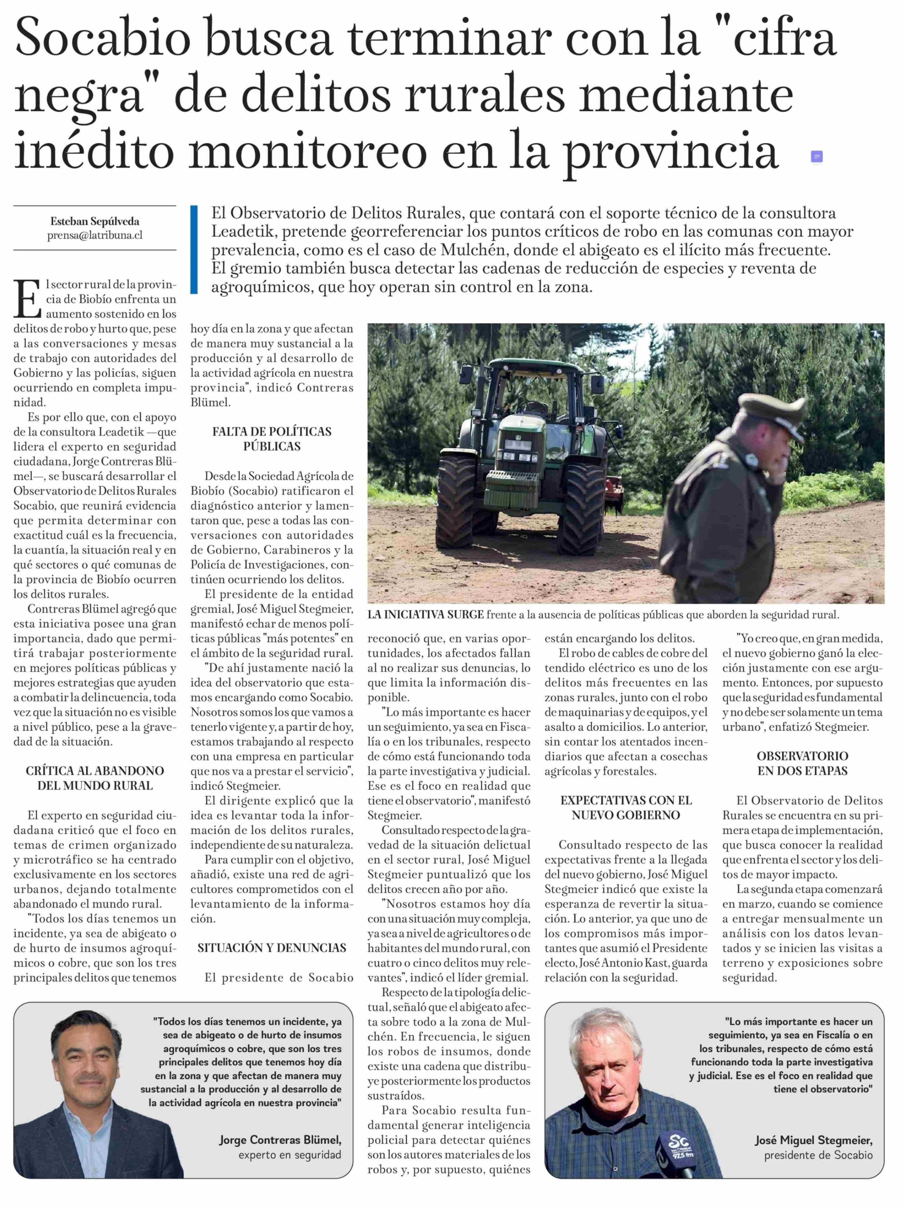 Socabio busca terminar con la "cifra negra" de delitos rurales mediante inédito monitoreo en la provincia