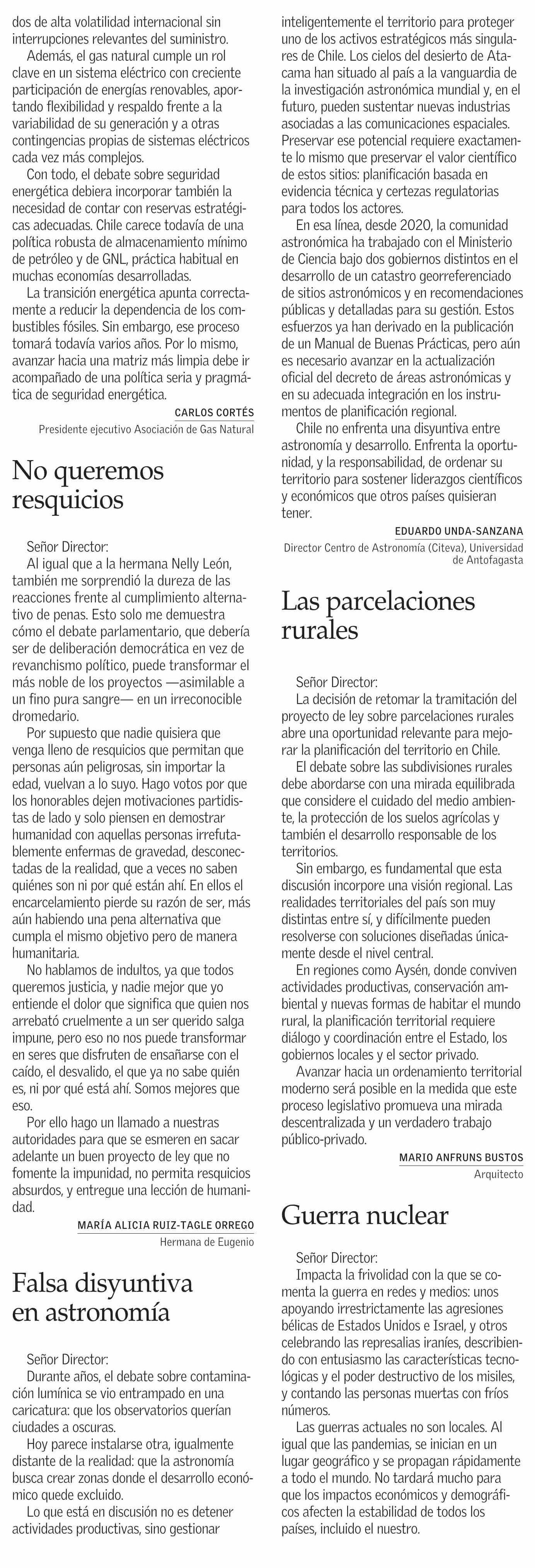 Cartas: Falsa disyuntiva en astronomía