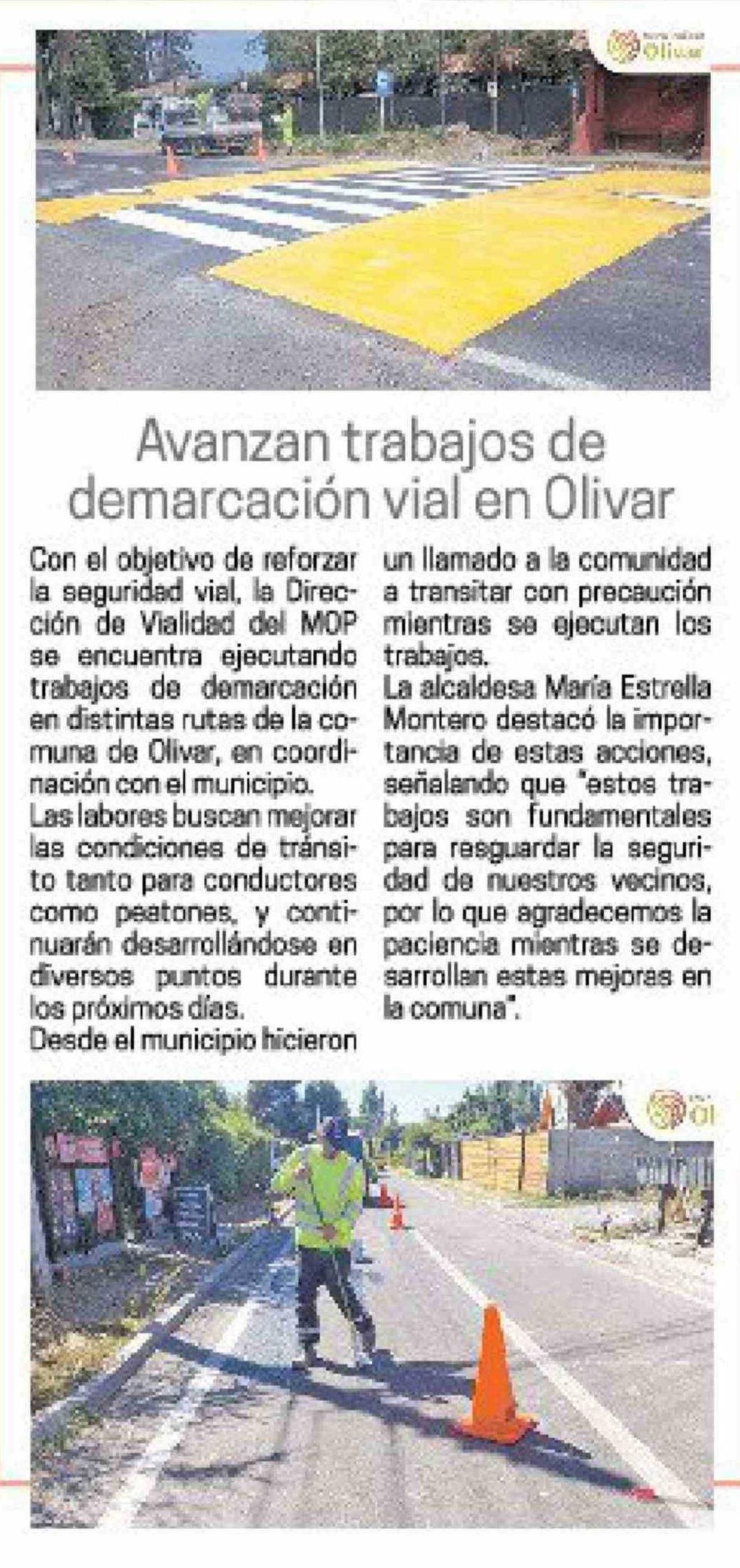 Avanzan trabajos de demarcación vial en Olivar
