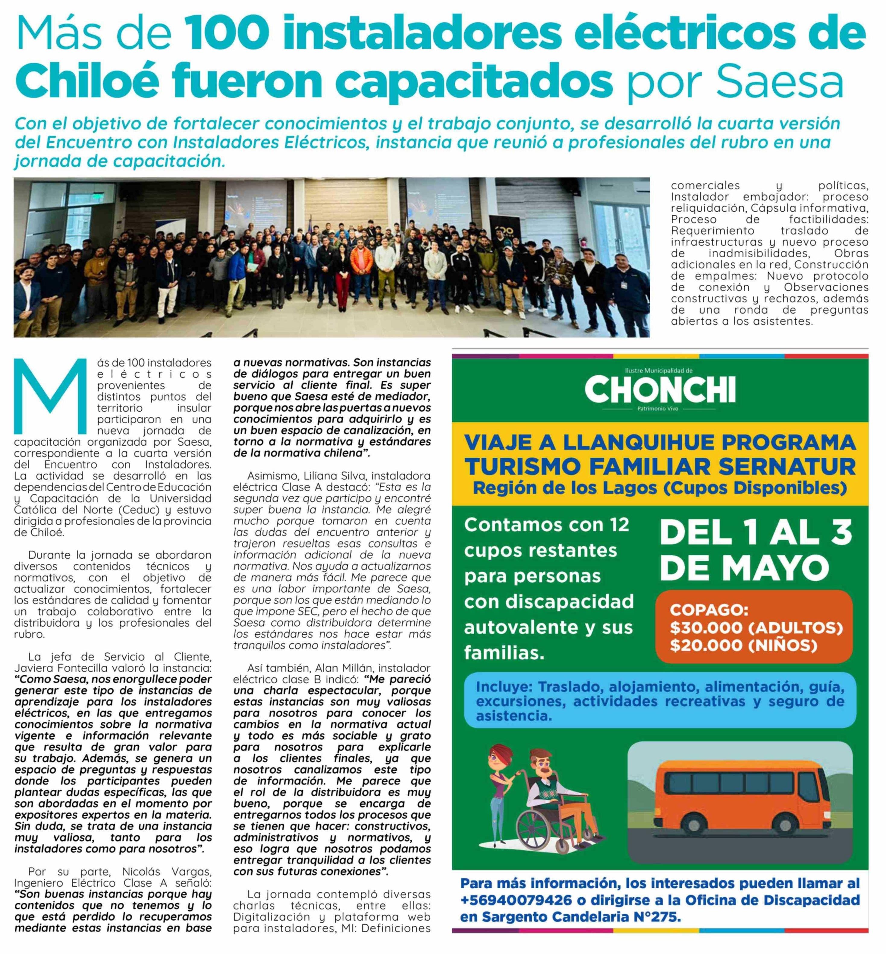 Más de 100 instaladores eléctricos de Chiloé fueron capacitados por Saesa