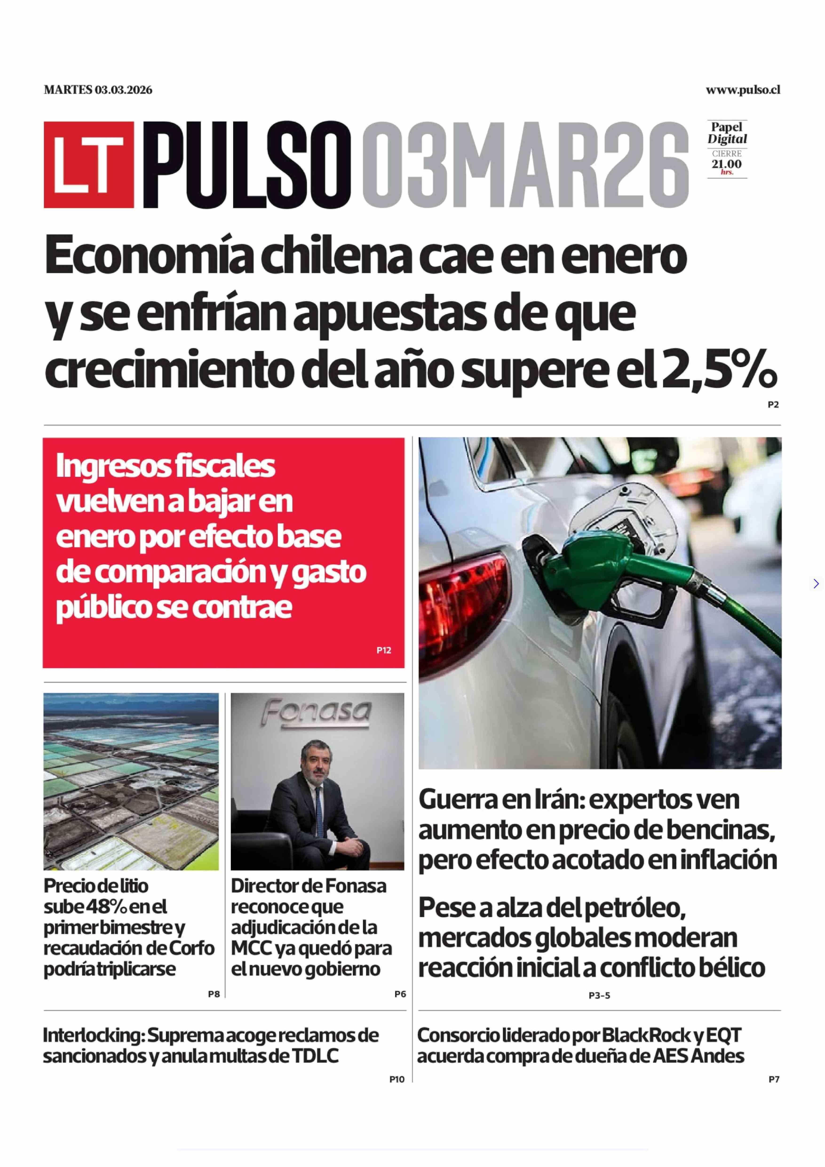 PORTADA LA TERCERA (PULSO) CHILE