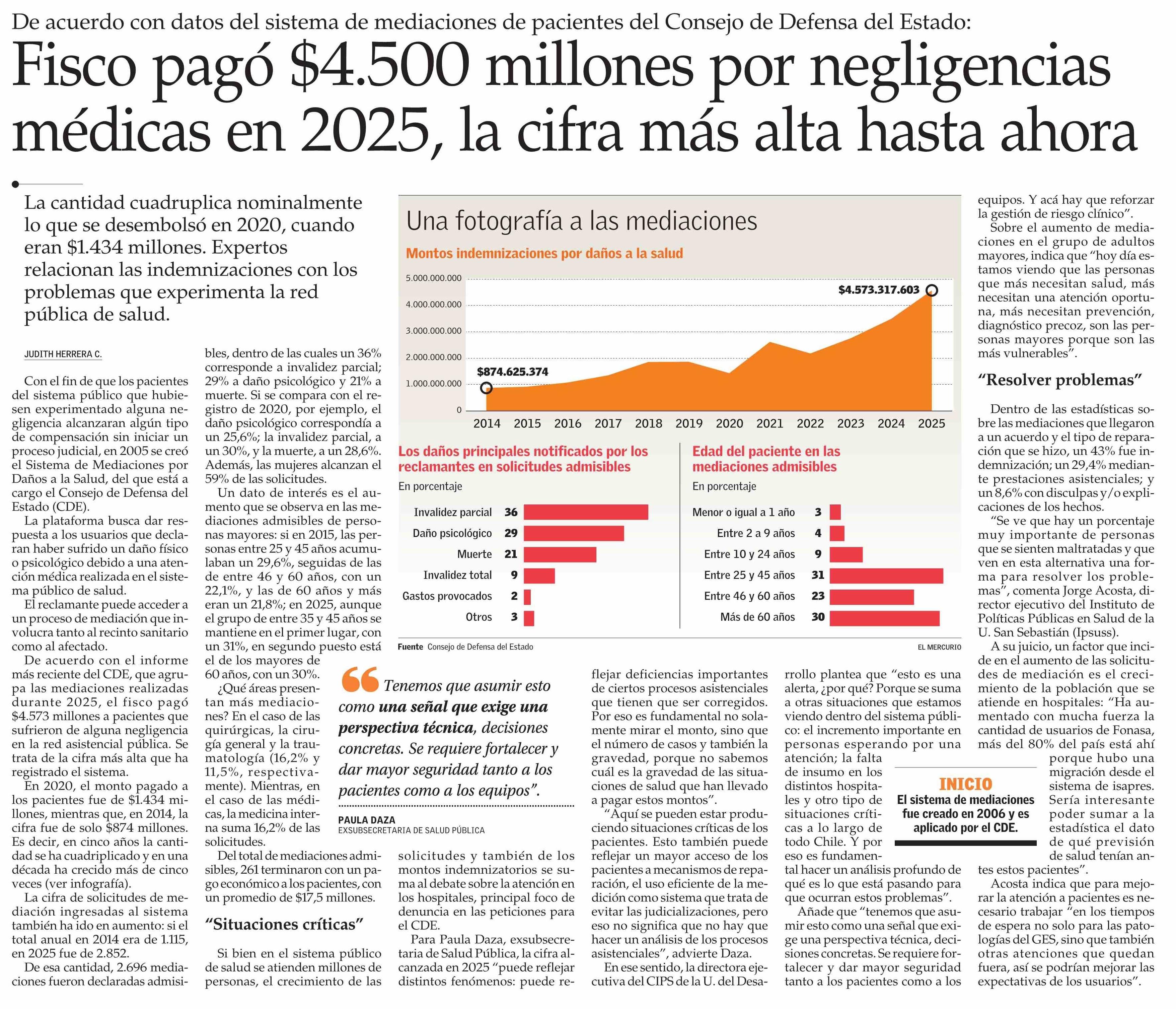 Fisco pagó $4.500 millones por negligencias médicas en 2025, la cifra más alta hasta ahora
