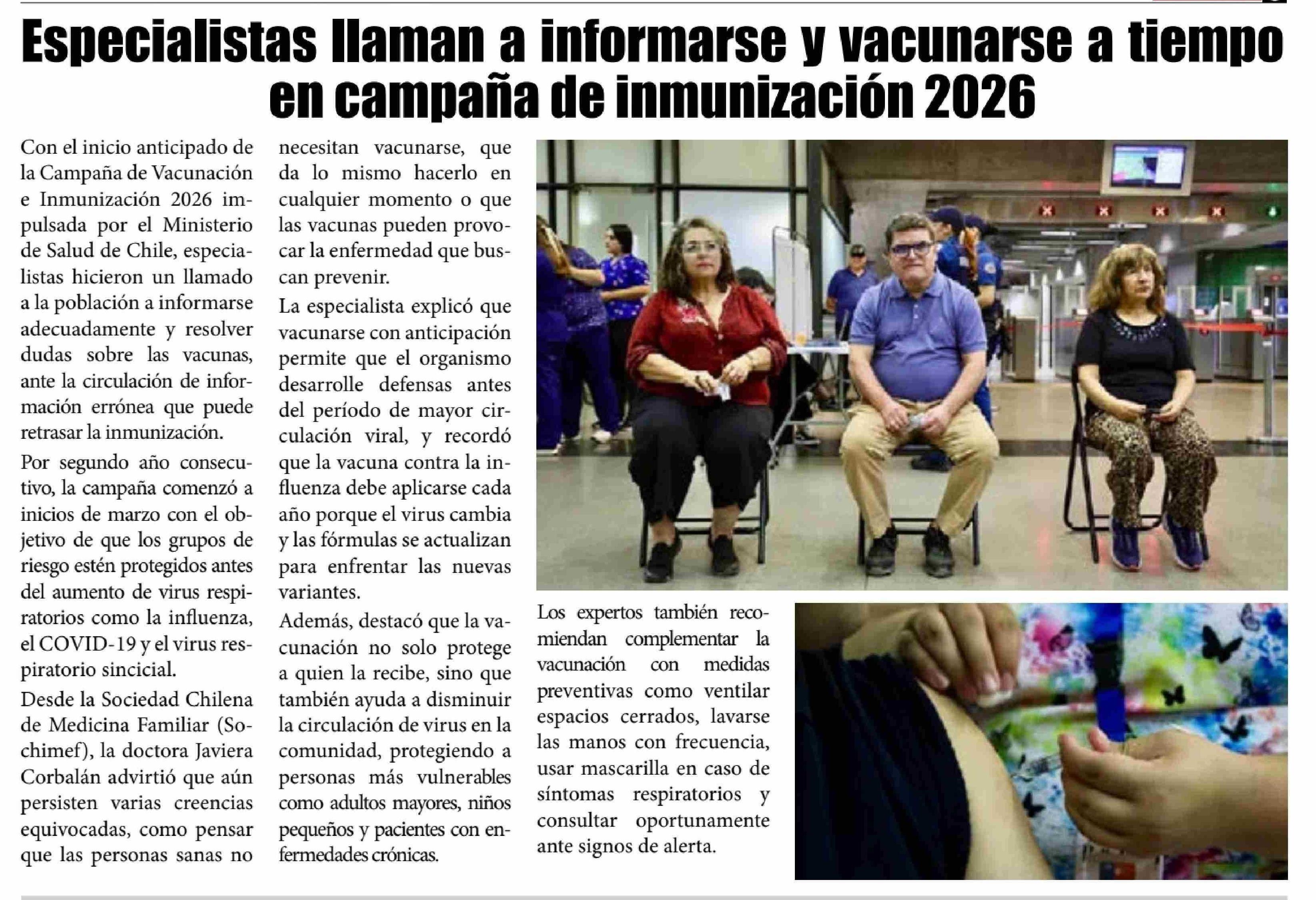 Especialistas llaman a informarse y vacunarse a tiempo en campaña de inmunización 2026