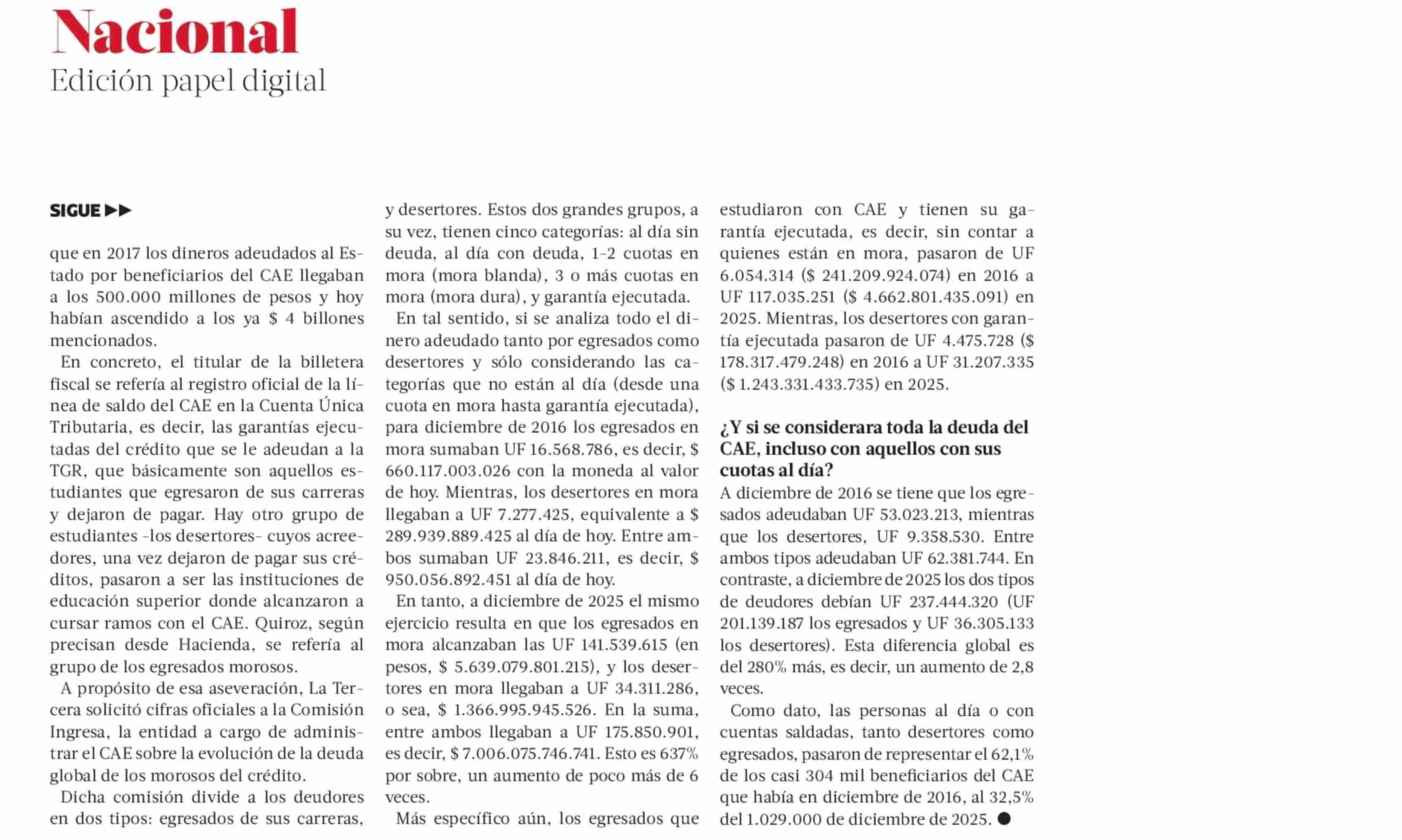Zoom a los $ 7 billones de deuda morosa del CAE: monto subió más de seis veces en 10 años