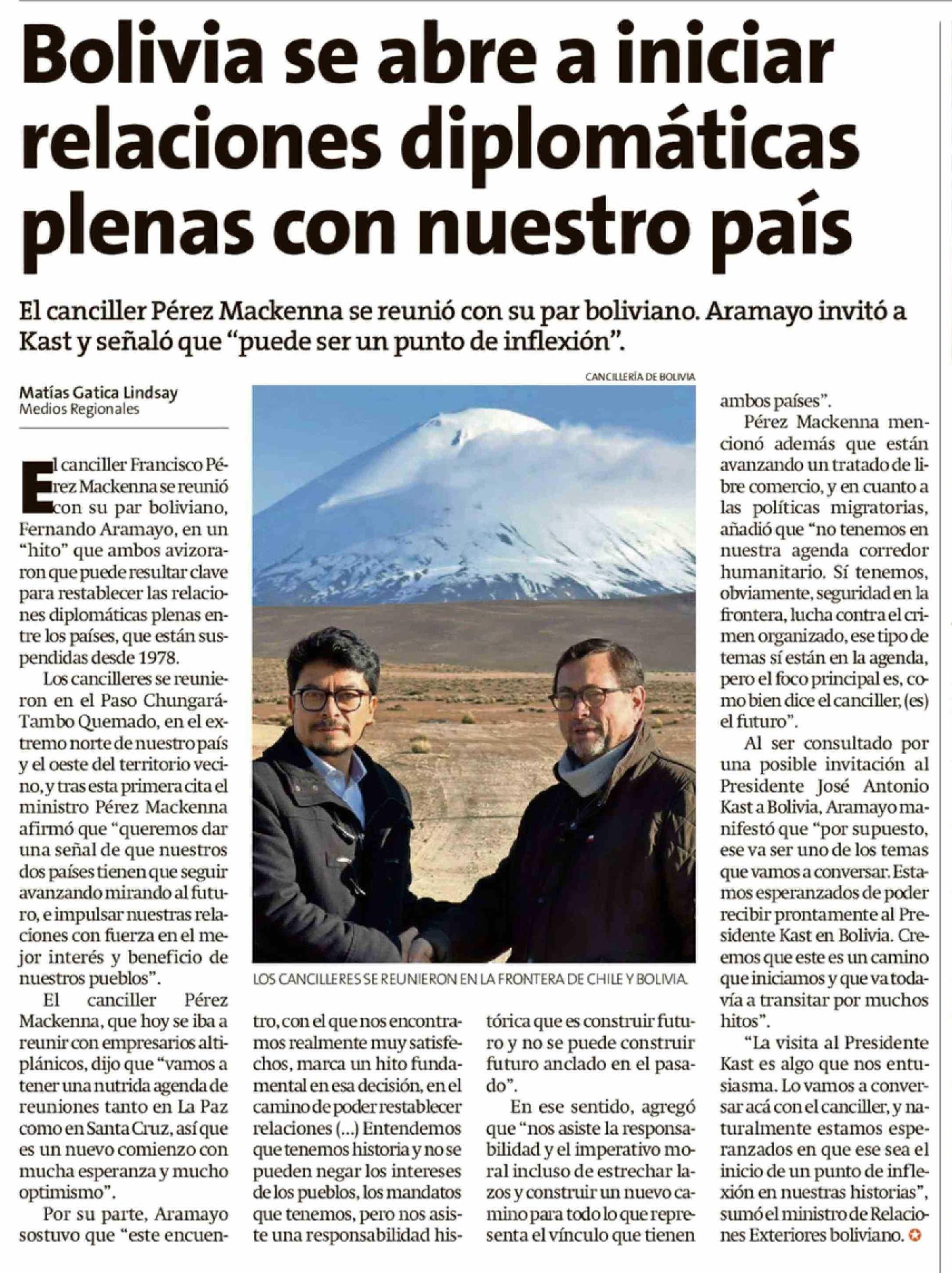 Bolivia se abre a iniciar relaciones diplomáticas plenas con nuestro país