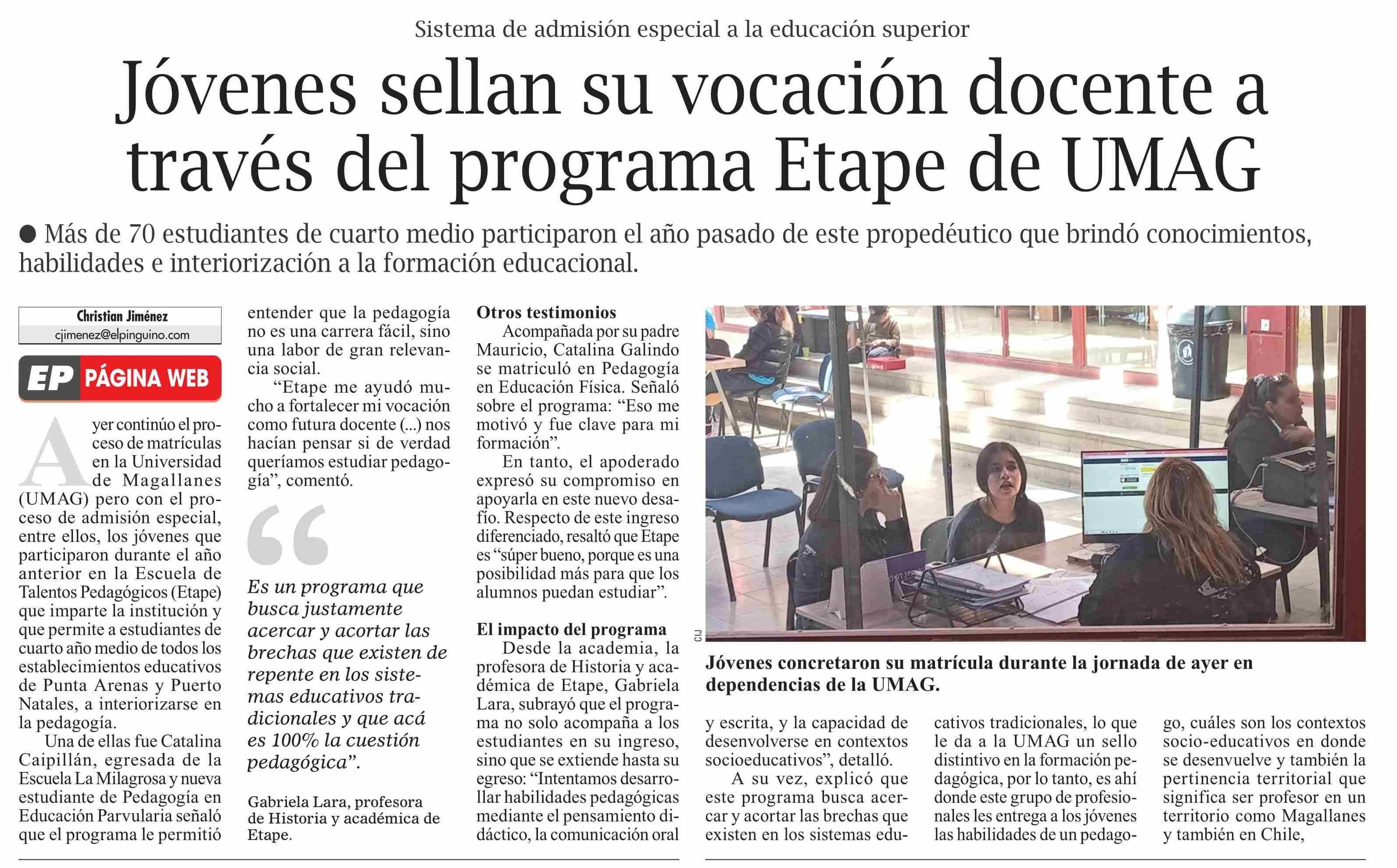 Jóvenes sellan su vocación docente a través del programa Etape de UMAG