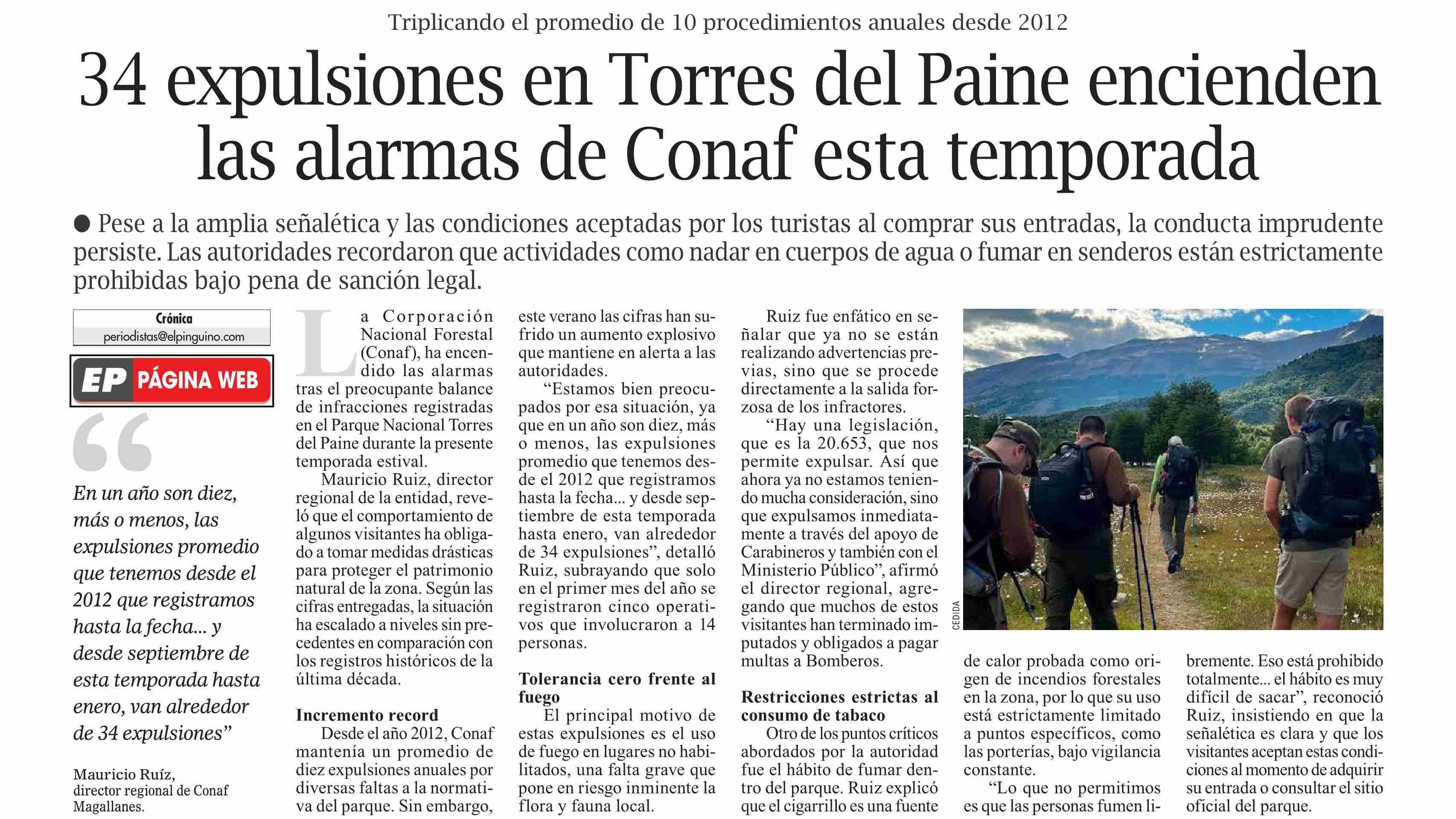 34 expulsiones en Torres del Paine encienden las alarmas de Conaf esta temporada