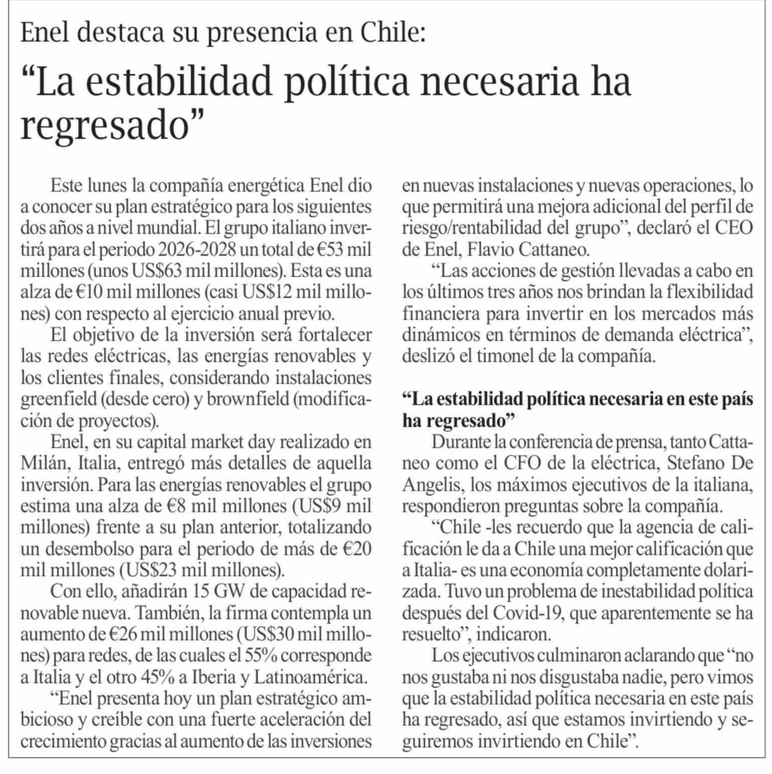 "La estabilidad política necesaria ha regresado"