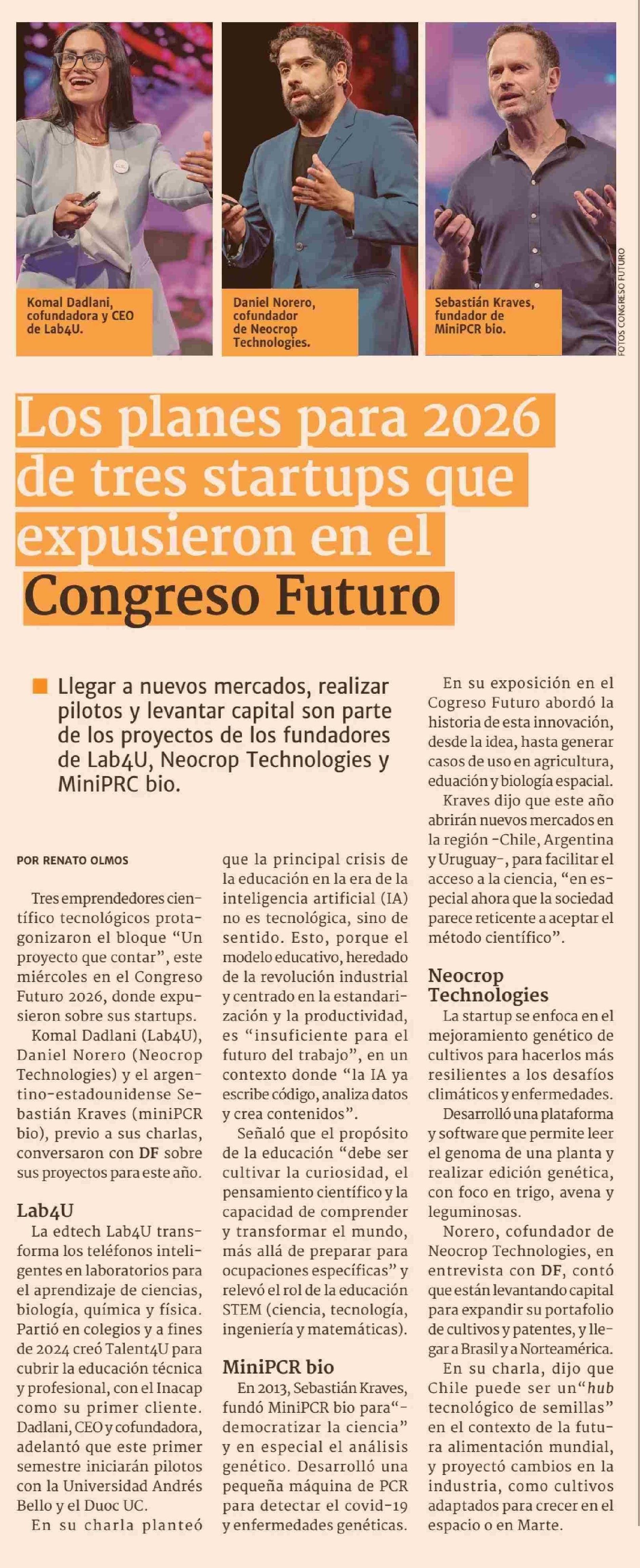 Los planes para 2026 de tres startups que expusieron en el Congreso Futuro