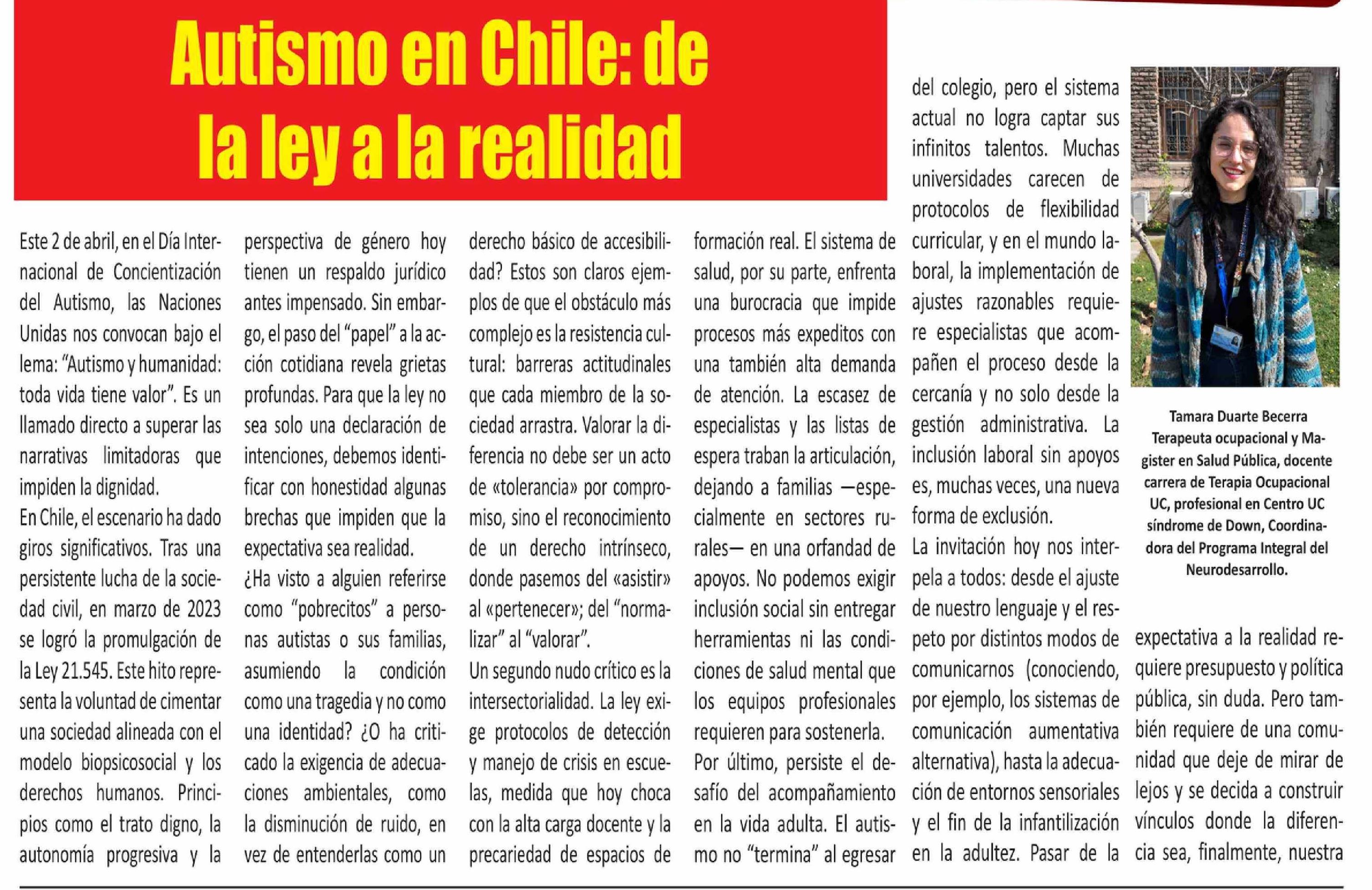 Columnas de Opinión: Autismo en Chile: de la ley a la realidad