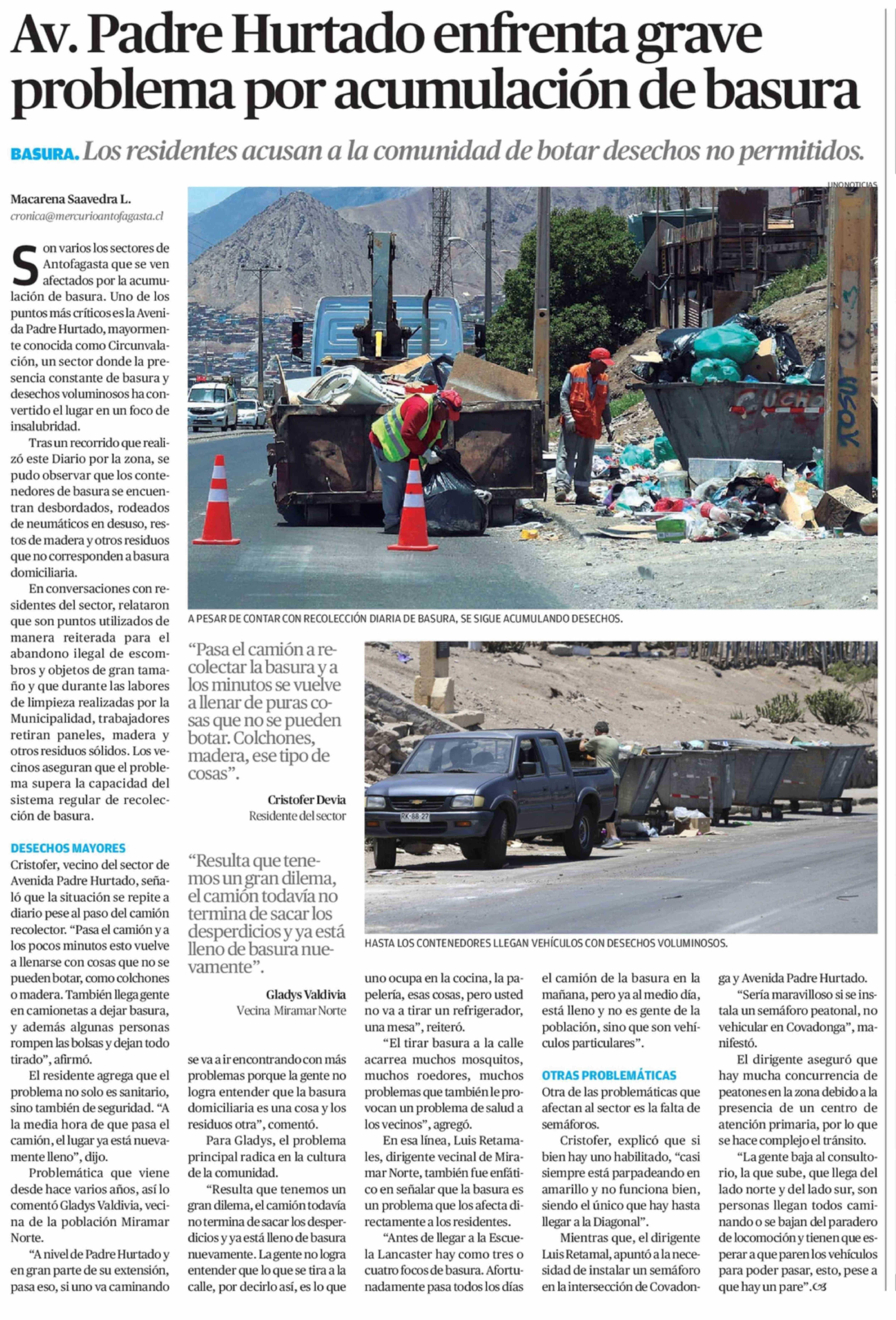 Av. Padre Hurtado enfrenta grave problema por acumulación de basura
