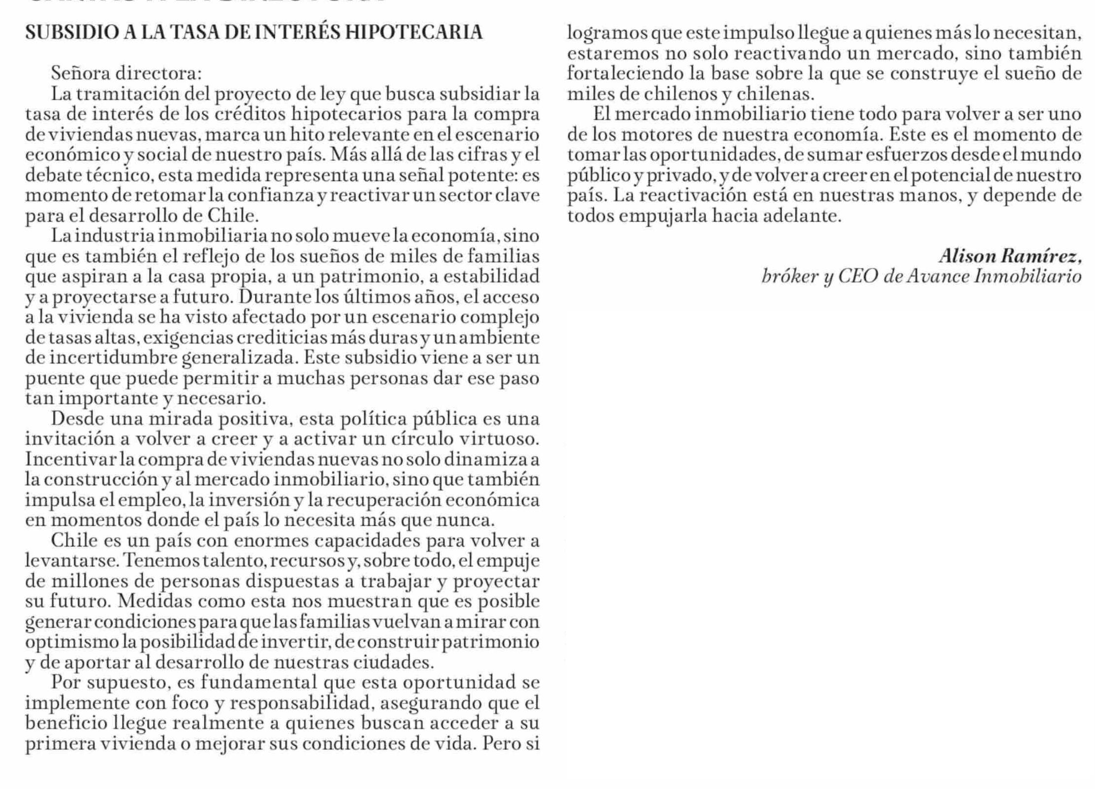 CARTAS: SUBSIDIO A LA TASA DE INTERÉS HIPOTECARIA