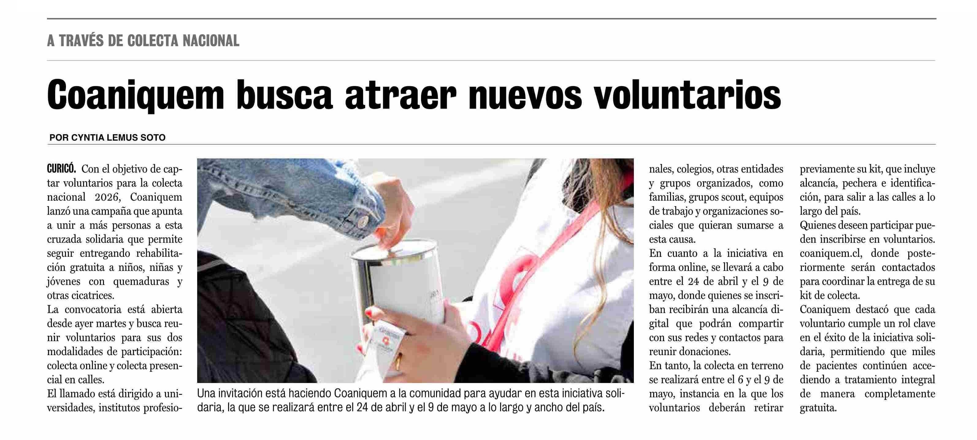 Título: Coaniquem busca atraer nuevos voluntarios