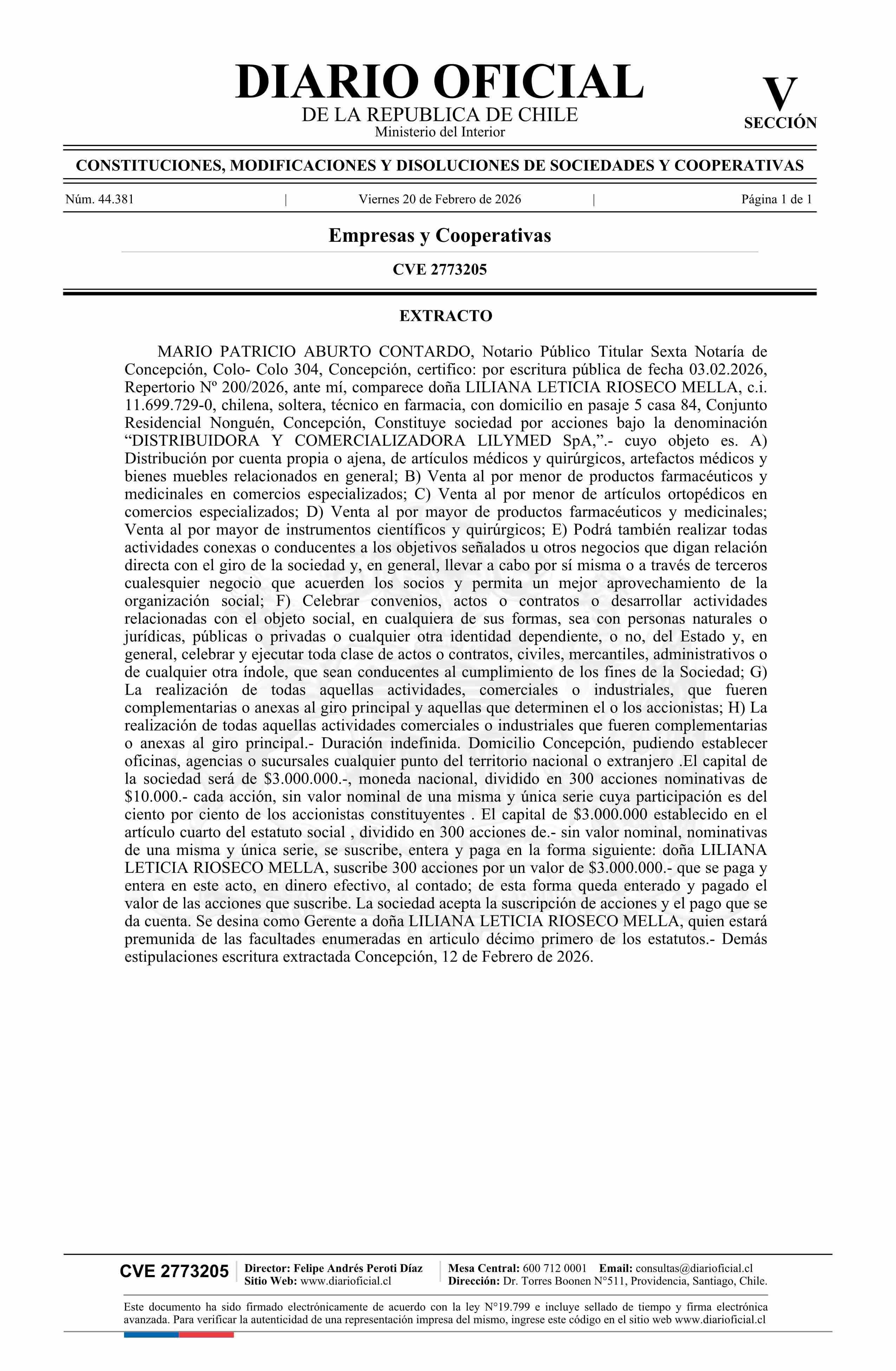 DISTRIBUIDORA Y COMERCIALIZADORA LILYMED SpA