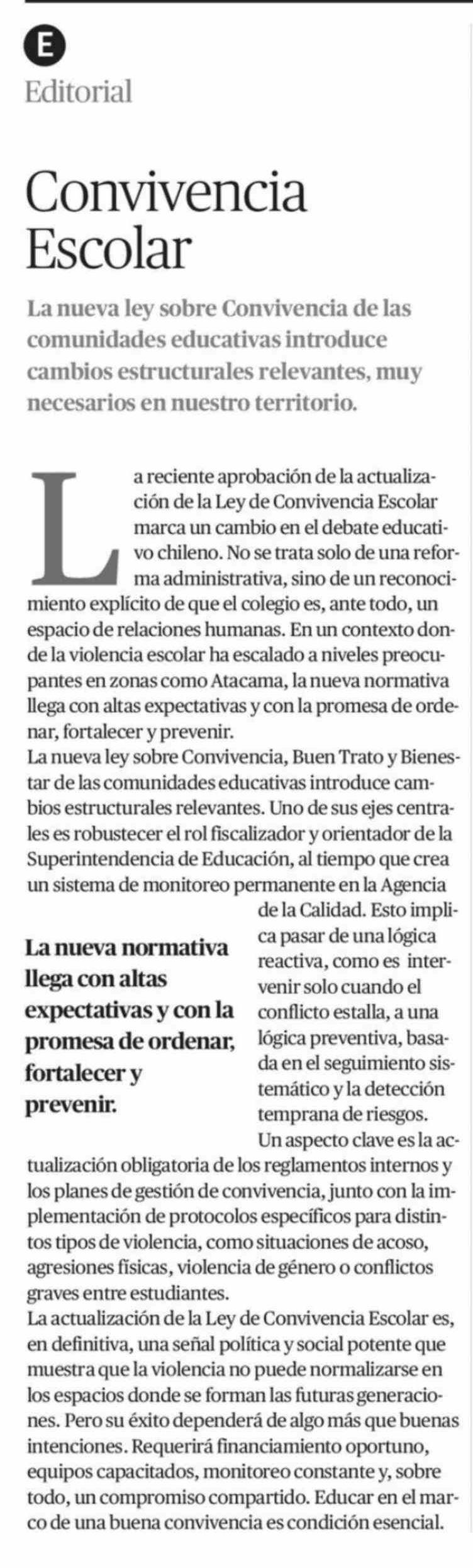 Editorial: Convivencia Escolar
