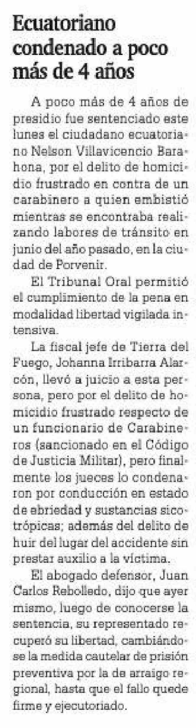 Ecuatoriano condenado a poco más de 4 años