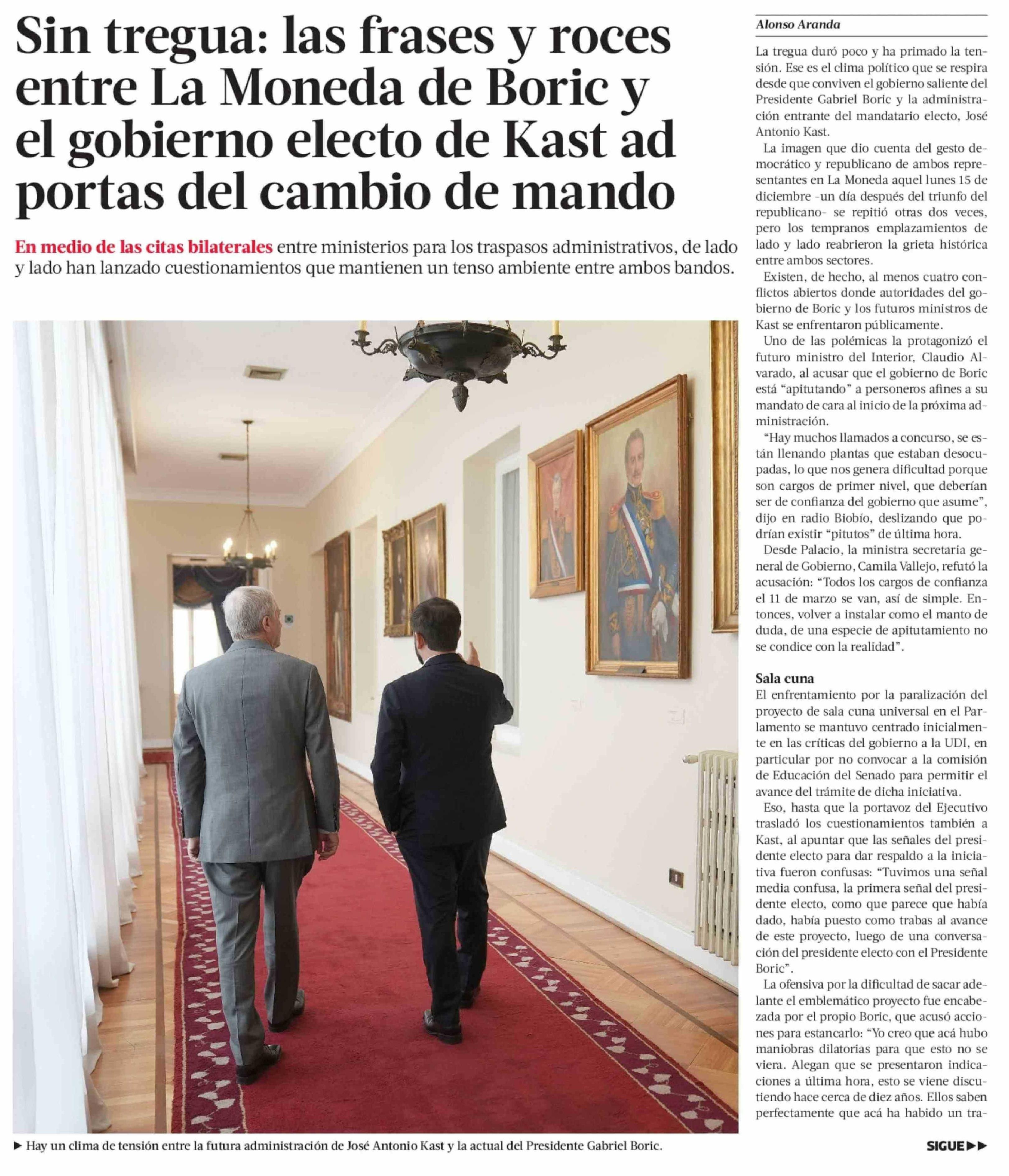 Sin tregua: las frases y roces entre La Moneda de Boric y el gobierno electo de Kast ad portas del cambio de mando