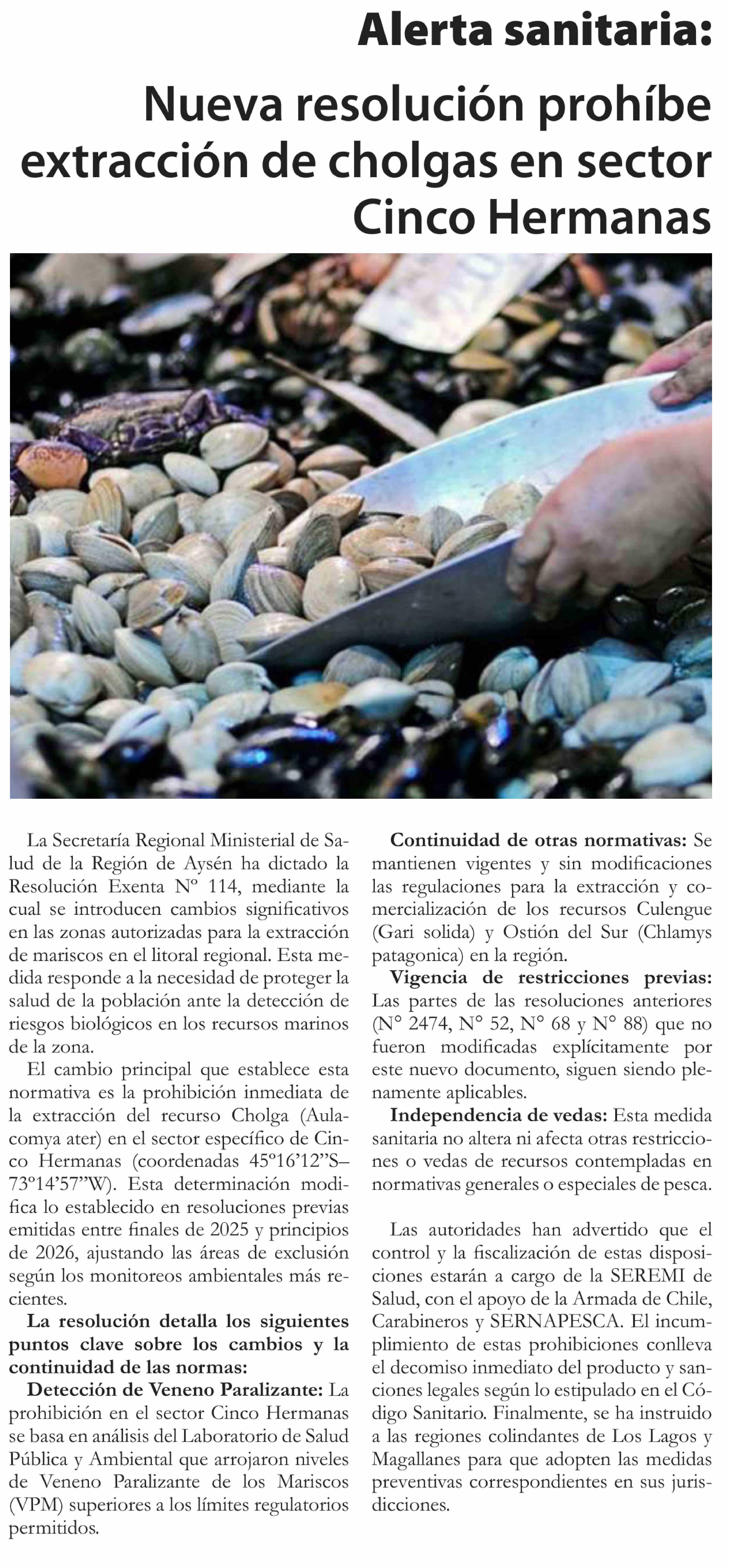 Nueva resolución prohíbe extracción de cholgas en sector Cinco Hermanas
