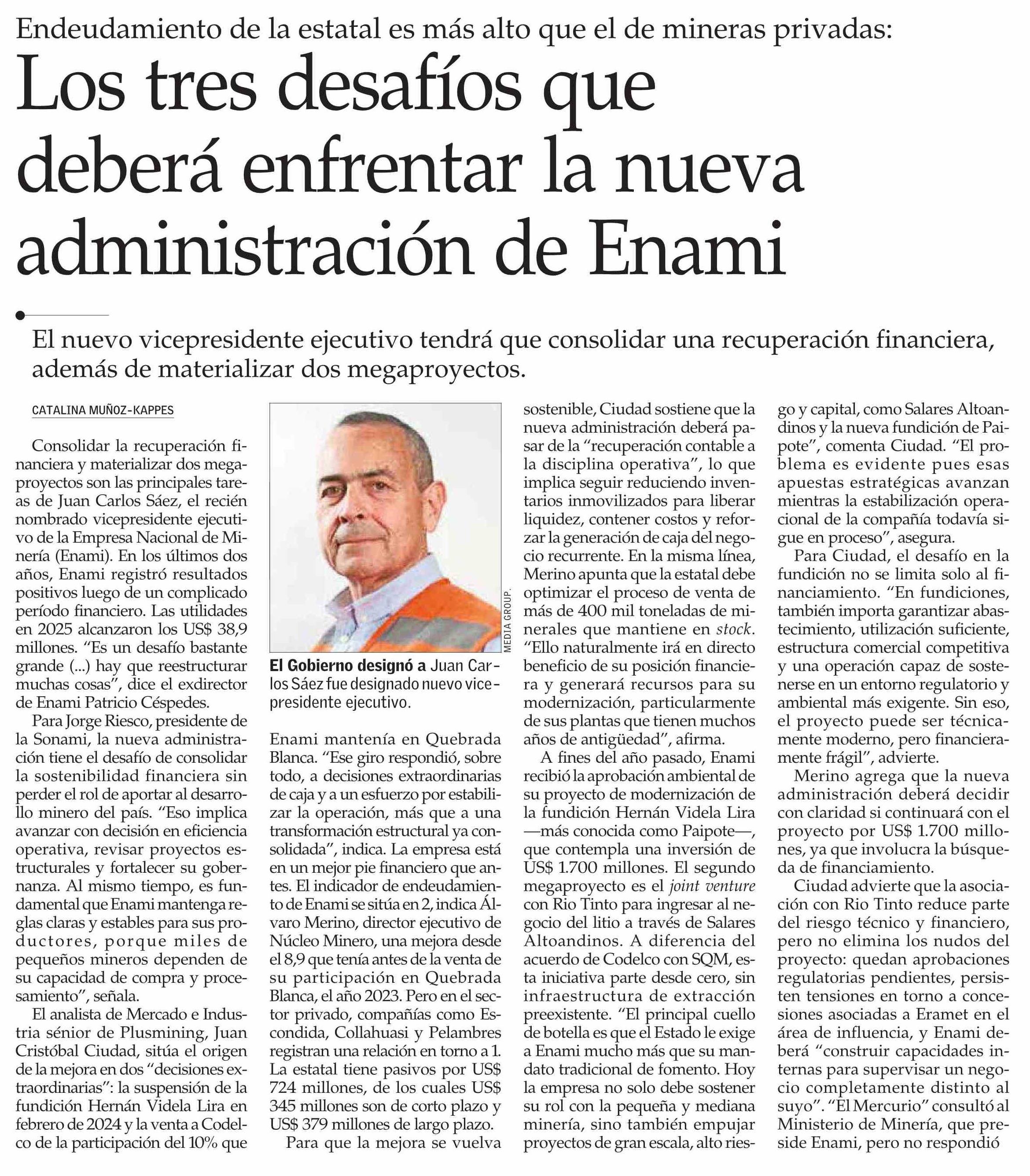 Los tres desafíos que deberá enfrentar la nueva administración de Enami