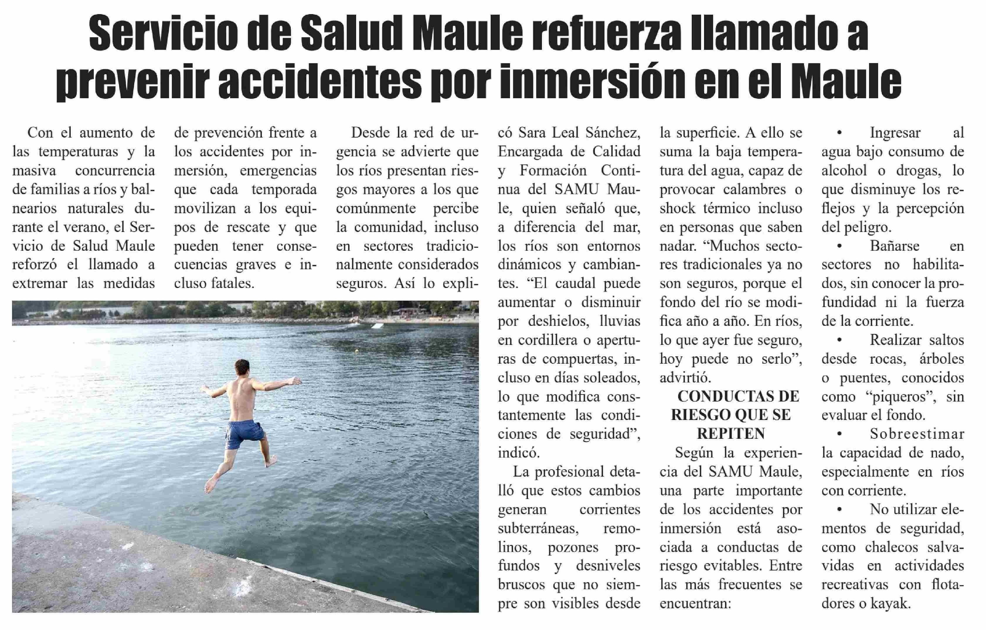 Servicio de Salud Maule refuerza llamado a prevenir accidentes por inmersión en el Maule